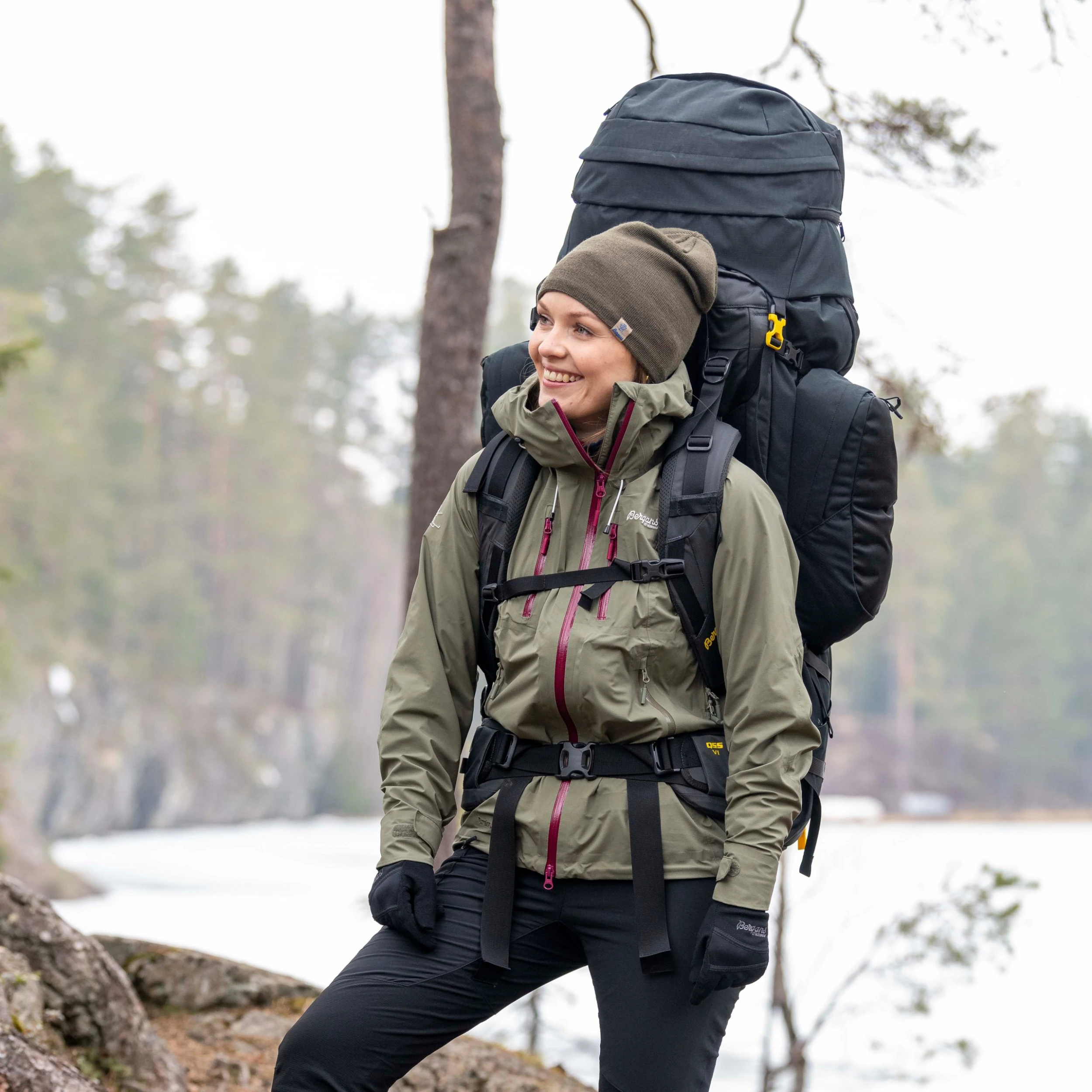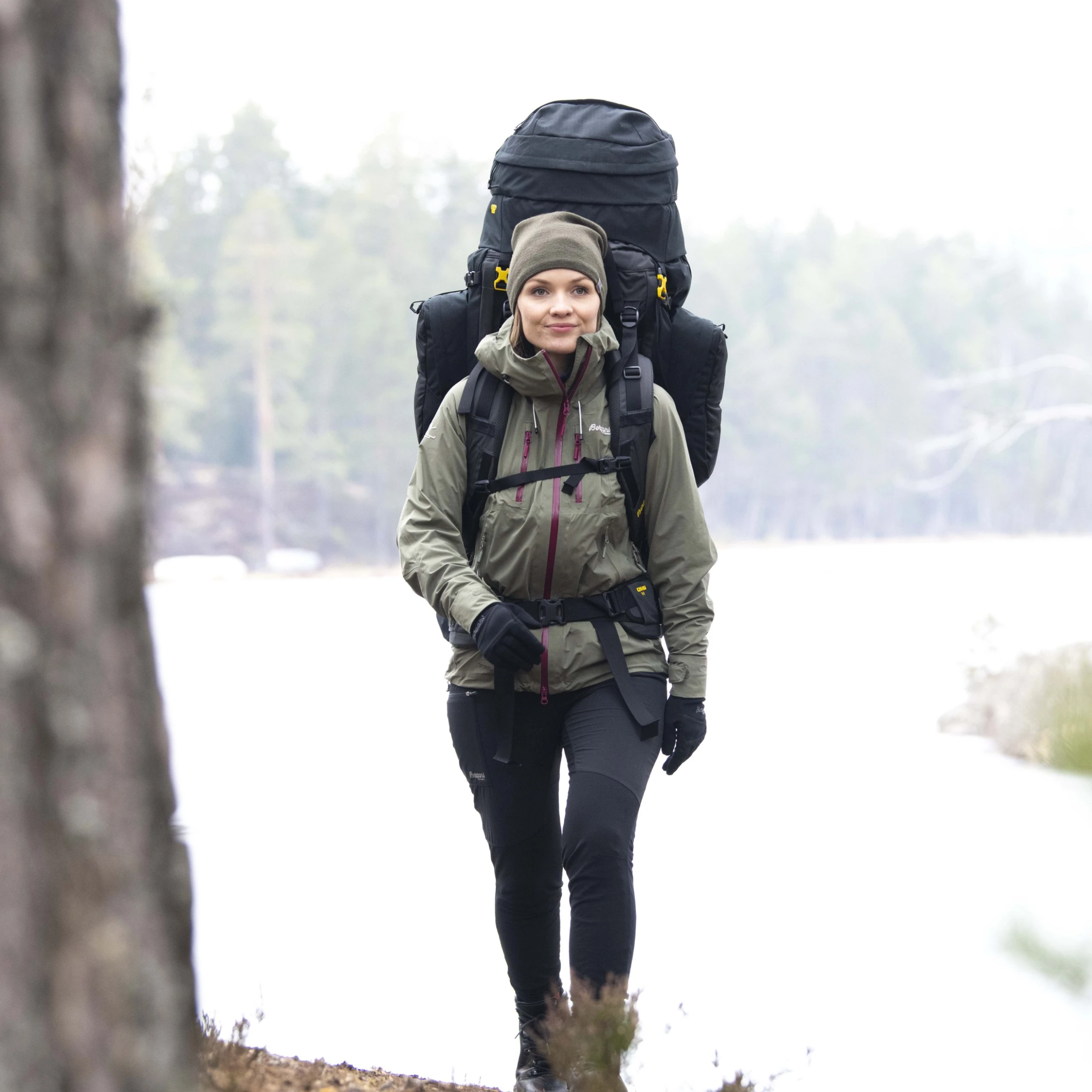 Komfortabelt hoftebelte med god bevegelighet. Feste for pulk. Stabiliserende stropper som bedrer stabiliteten ved at ryggsekken kan trekkes nærmere kroppen.