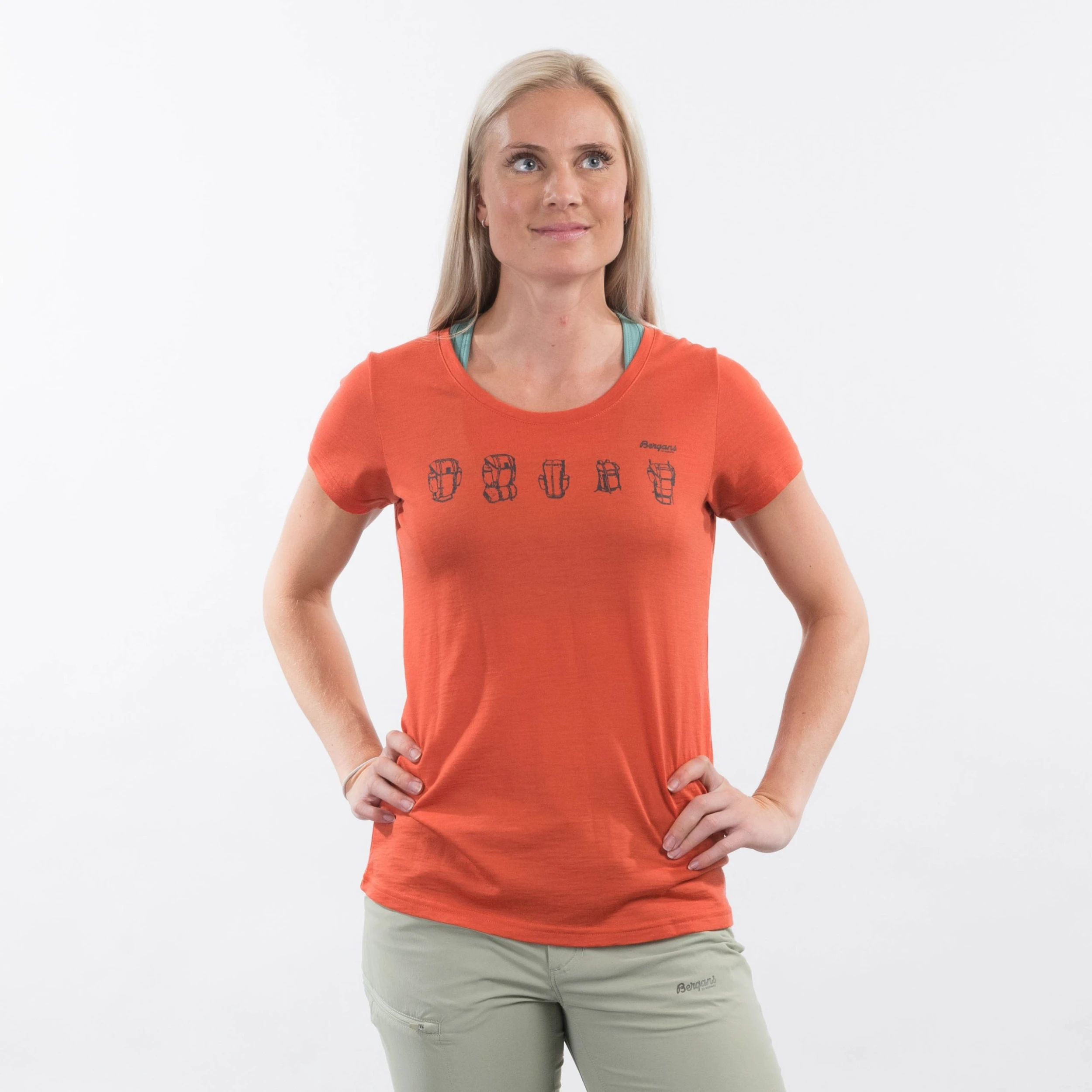 Backpack Wool Tee er fremstilt av en blanding av merinoull og Tencel, noe som gir en sval følelse mot huden i varmt vær, samtidig som den gir varme på kaldere dager. Merinoullen varmer selv om den blir våt og kan ta opp mer enn 30 % av sin egen vekt før den føles fuktig.