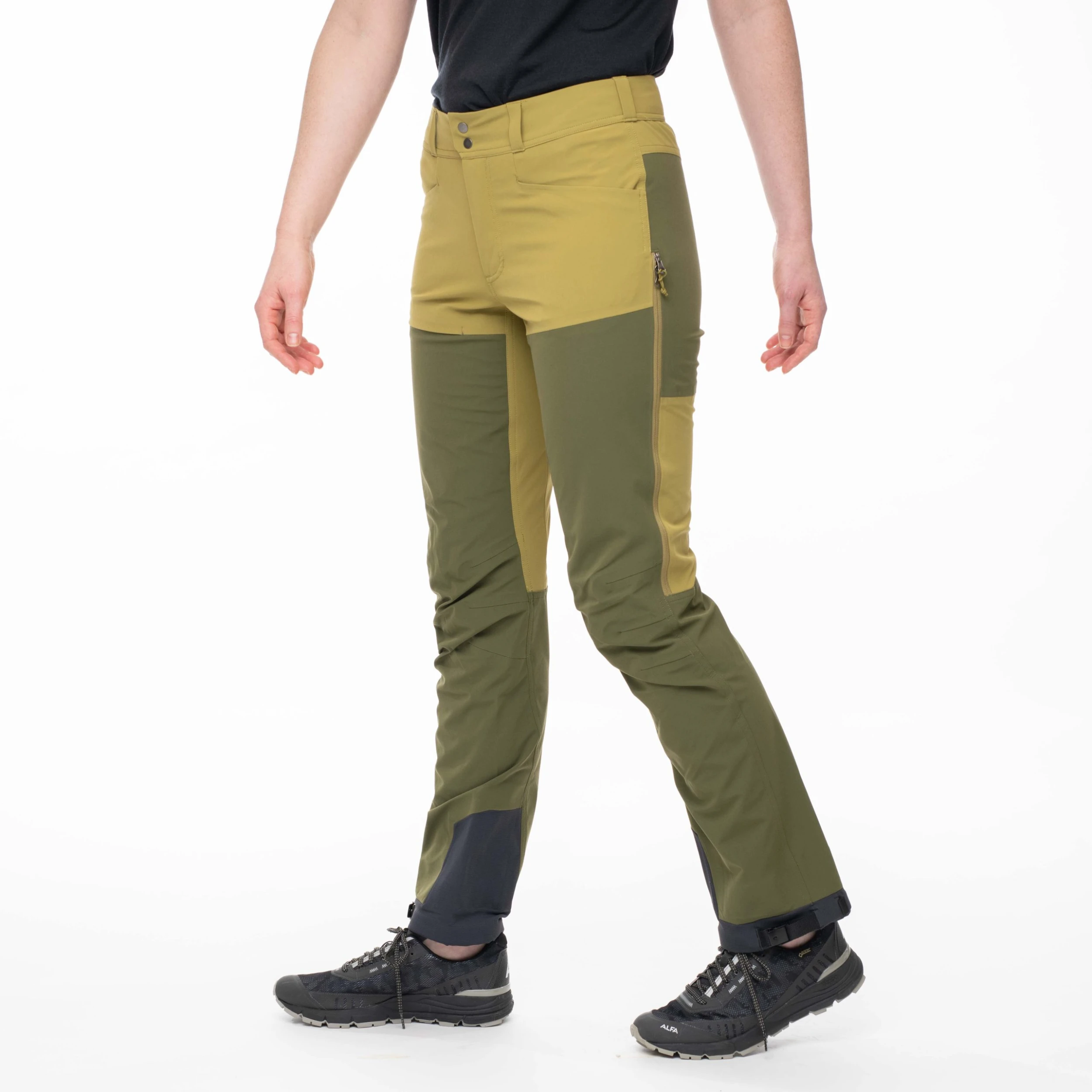 En kombinasjon av to lette og elastiske softshellmaterialer. Den har et slitesterkt og vanntett materiale på utsatte områder, som setet og fra låret og nedover, og et materiale med bedre pusteegenskaper og fukttransporterende egenskaper på bena og øverst foran. Forsterkende materiale på innsiden av bena. Komfortabelt, hurtigtørkende og fuktabsorberende materiale på innsiden av linningen. Produktet inneholder bluesign® APPROVED trimmings.