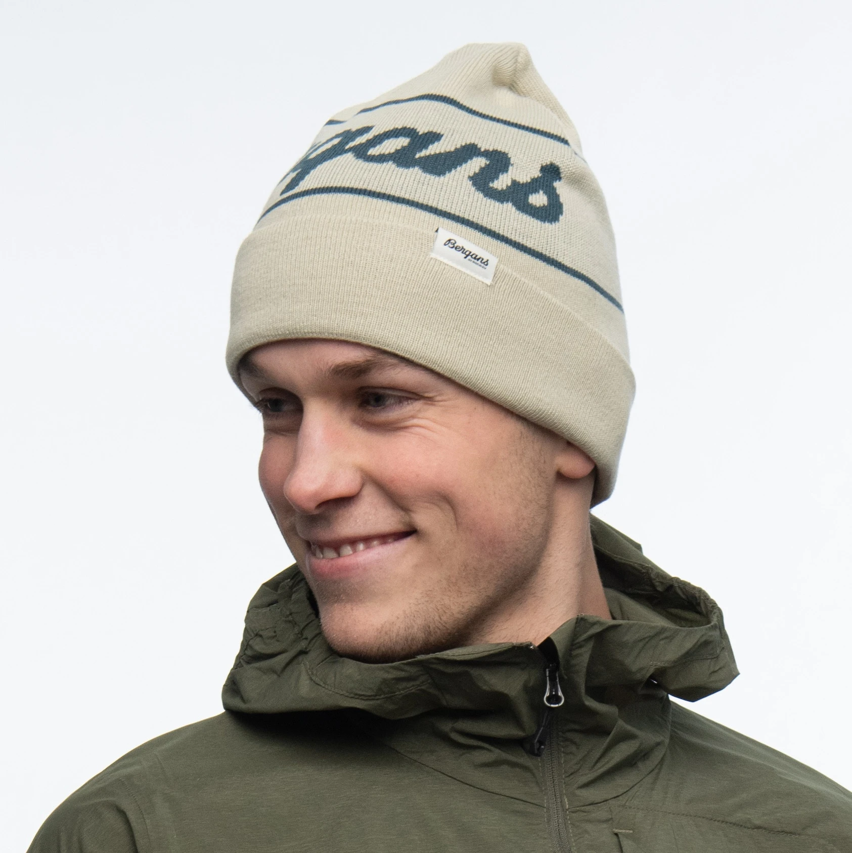 Fin og komfortabel strikkelue. Bergans Logo Beanie er laget i den mer bærekraftige materialblandingen Polylana, som er et innovativt fiber med egenskaper som likner ull.