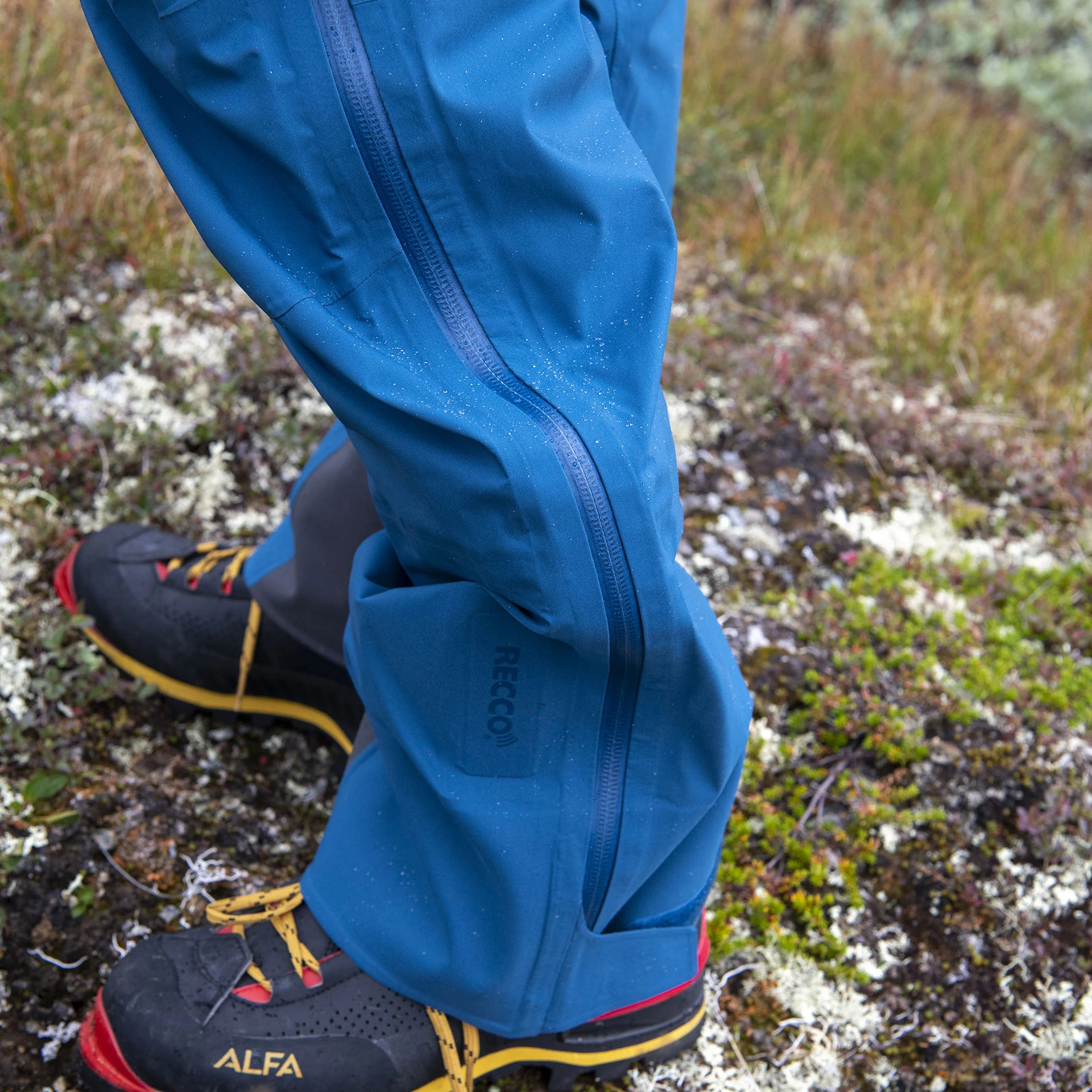 Recco®-søkebrikke på buksebenet. Borrelås og strikk i linningen. Formsydd kneparti. Borrelåsjustering nederst på bena. Forsterket nederst på bena og ekstra forsterkning på innsiden for økt slitestyrke. Panelkonstruksjon i skrittet for å forhindre friksjon og gnaging på innsiden av lårene.
