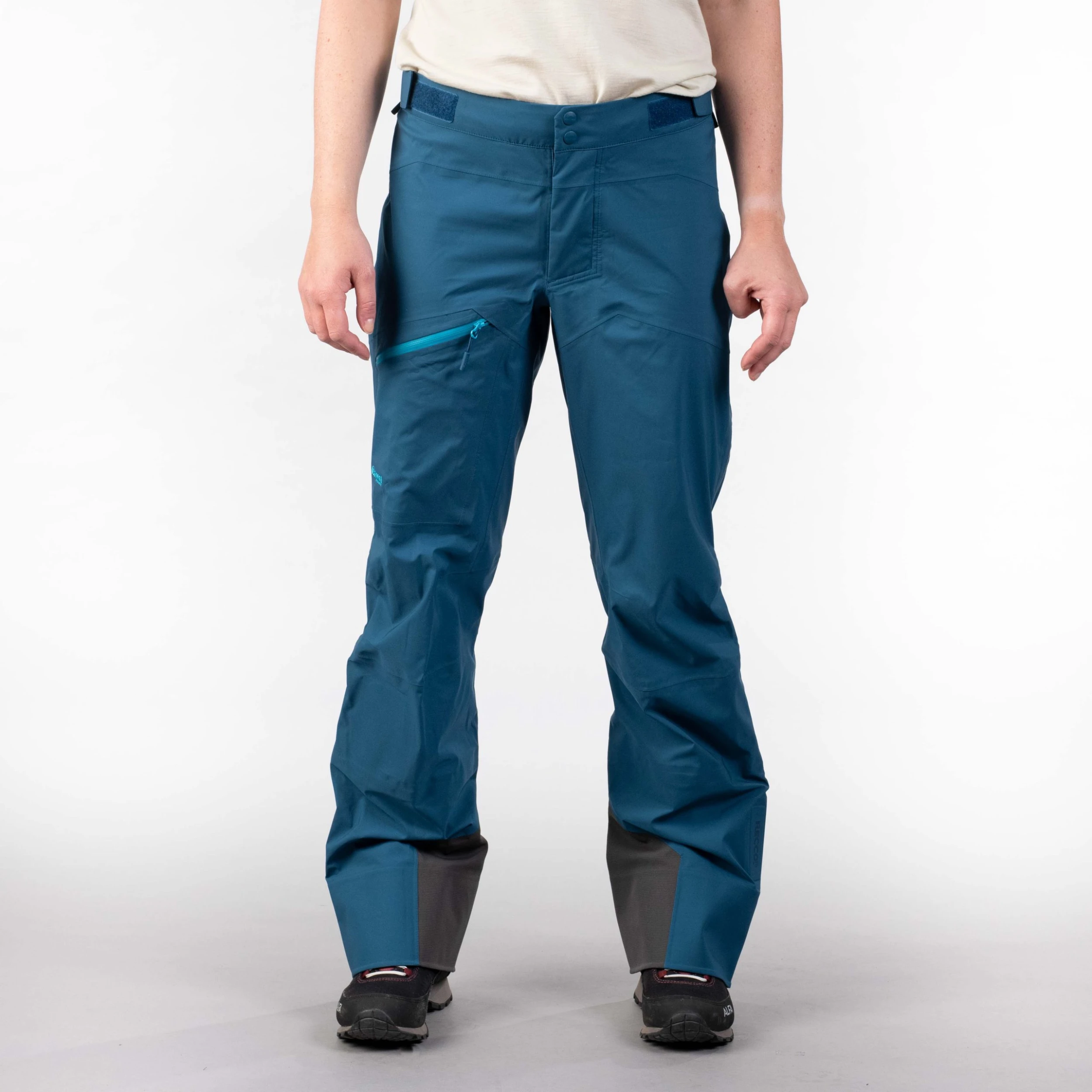 3-lags Dermizax®NX med 15% plantebasert Ecodear®-polyester. Vanntett, vindtett og enestående pustende egenskaper. Komfortabelt, hurtigtørkende og fuktabsorberende materiale i linningen. Produktet inneholder bluesign® APPROVED fabrics and trimmings.