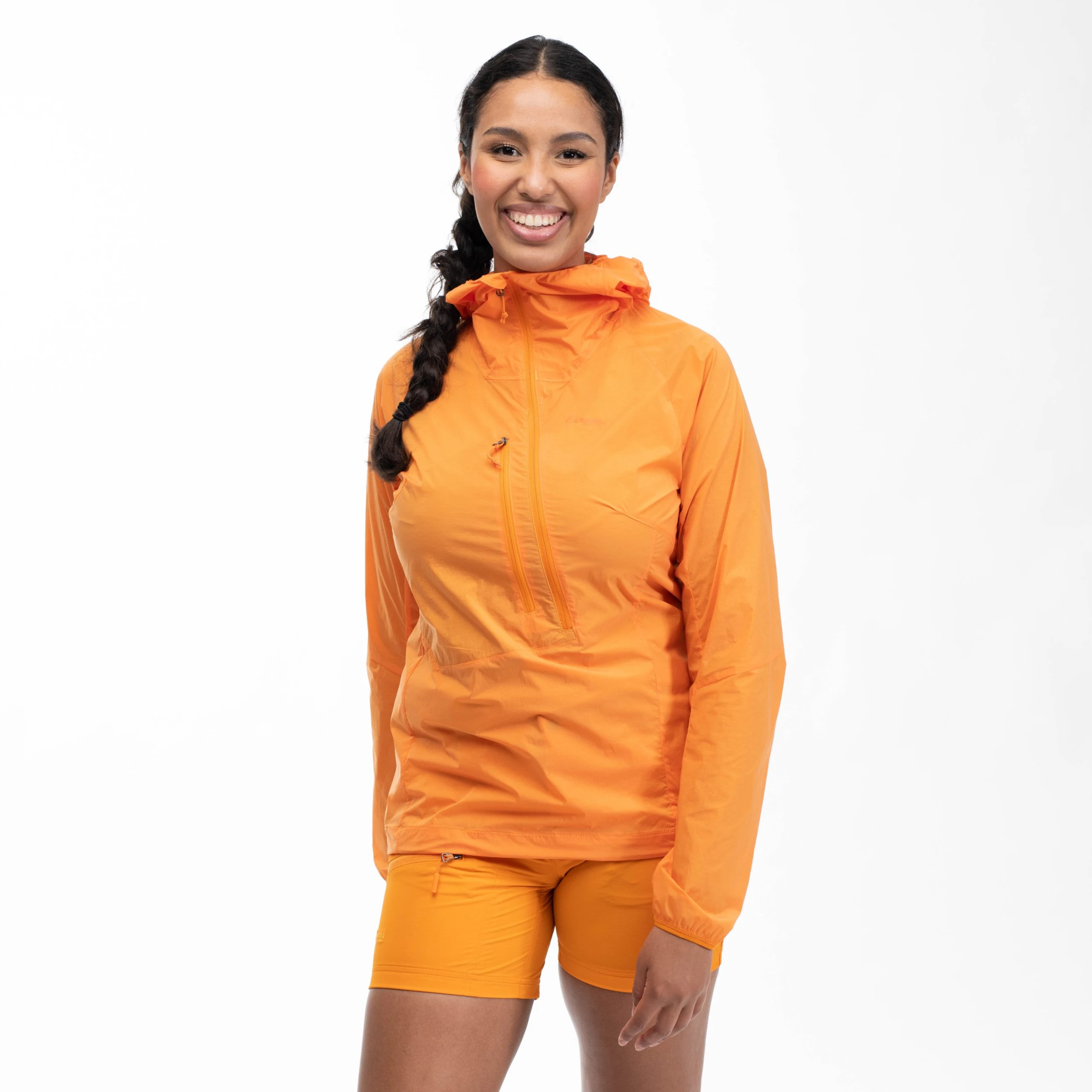 Lett og sporty anorakk laget for en rekke ulike utendørsaktiviteter. Cecilie Light Wind Anorak er laget i et mykt og vindavvisende materiale og inneholder bluesign® APPROVED fabrics and trimmings. Den PFAS-frie impregneringen gjør anorakken vannavvisende. Materialet har dessuten svært god pusteevne og tørker raskt. Blir du for varm, kan du justere ventilasjonen med den forlengede frontglidelåsen. Den asymmetriske glidelåsen gir plagget en kul og sporty look og forhindrer at glidelåsdrageren gnager mot haken. Ingen sømmer i siden for å forhindre at det oppstår friksjon. Dette gir høy komfort ved bæring av sekk samt mindre slitasje. Anorakken kan komprimeres i sin egen brystlomme, slik at den blir liten og lett å bære med seg. Cecilie Light Wind Anorak er utviklet i samarbeid med eventyrer og fjellklatrer Cecilie Skog.