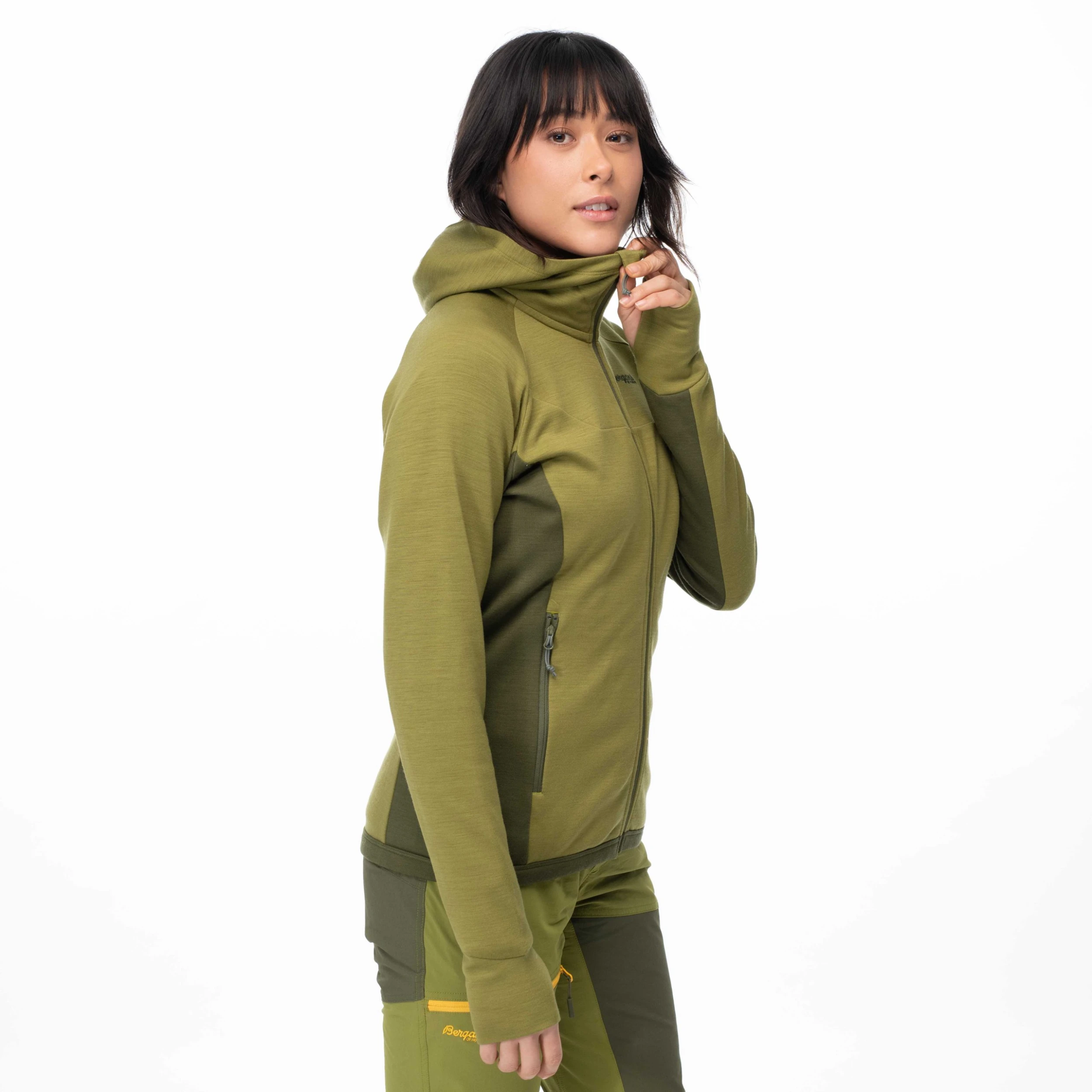 Cecilie Wool Hood Jacket er så god og deilig at den raskt vil bli din faste følgesvenn. Det lette materialet er satt sammen av to lag: ett i merinoull og ett i resirkulert polyester. Tolagskonstruksjonen gjør at stoffet holder mer på luft, noe som gir en høyere isolasjonsevne. Cecilie Wool Hood Jacket er perfekt å bruke alene eller som et varmende mellomlag. Cecilie Wool Hood Jacket er utviklet i samarbeid med eventyrer og fjellklatrer Cecilie Skog.