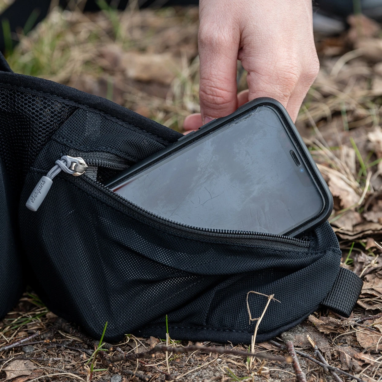 Ekspanderende frontlomme. Elastiske sidelommer i mesh. Glidelåslommer i elastisk mesh på hoftebeltet. Elastiske meshlommer på skulderremmen. Glidelåslommer med nøkkelkrok på innsiden av hovedrommet. Utstyrslomme fôret med myk mikrofleece øverst.