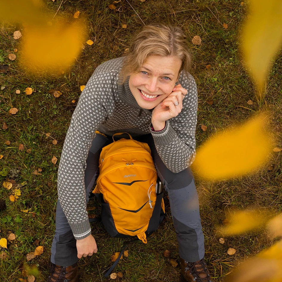 Ventilerende skulderrem og Bergans FlowPanel i ryggflaten. Ventilerende hoftebelte med lommer. Ventilerende hoftebelte med lommer. Skulderremmene, hoftebeltet og ryggpanelet er spesielt utviklet for kvinner.