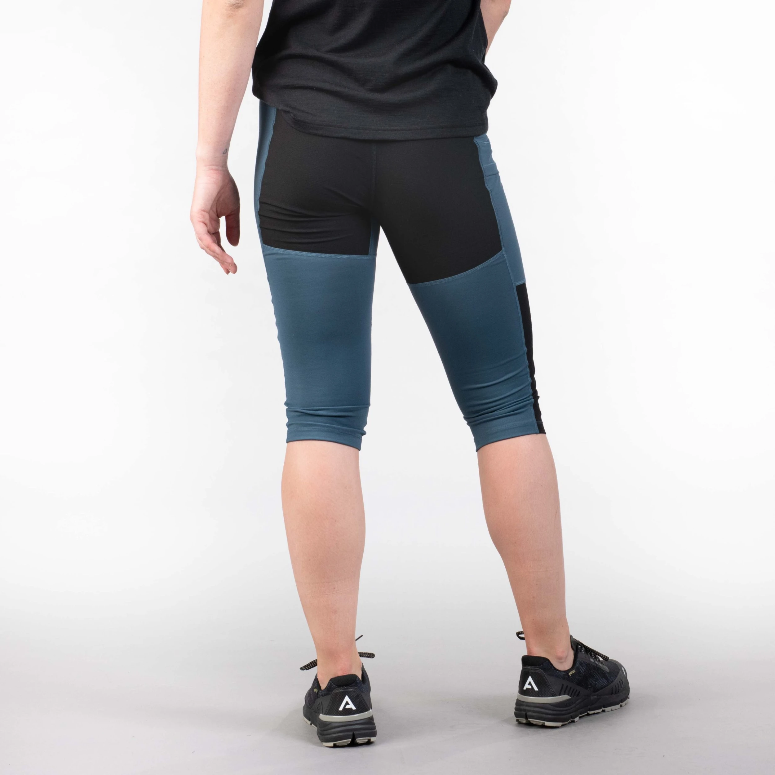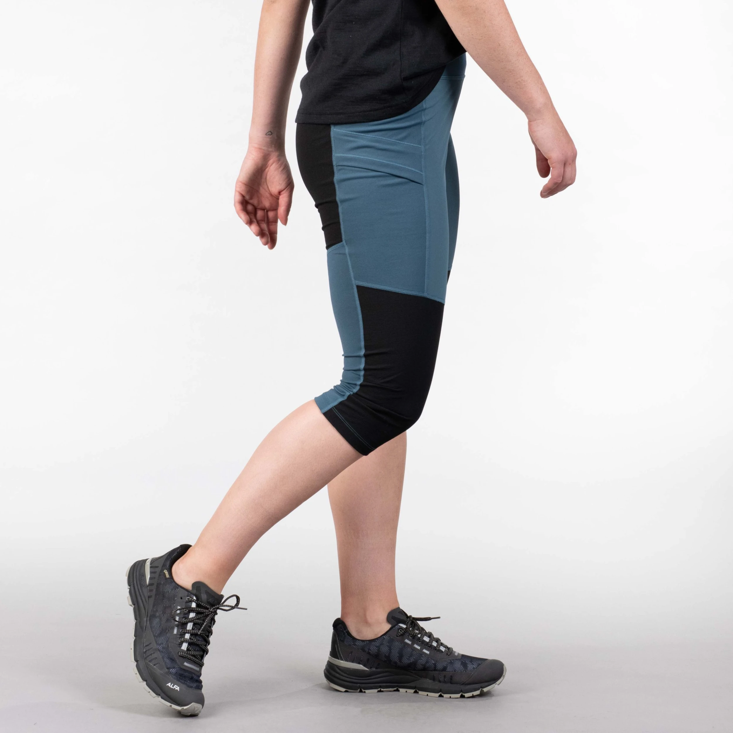 Versjon to av Fløyen ¾ W Pants er her! Oppgraderingen består av en finjustert passform og en ny kombinasjon av materialer. For øvrig er buksen fortsatt like teknisk avansert og har den samme kroppsnære passformen med ¾-lengde, noe som gjør den perfekt for sommeraktiviteter med høyt tempo. Fløyen ¾ Outdoor Tights er laget av et lett og ventilerende materiale som er fremstilt delvis av resirkulerte fibre. Takket være 4-veis stretch er materialet svært behagelig og følger kroppens bevegelser perfekt. Forsterkninger på setet og knærne, og Cordura®-stretchmateriale i sidene og bak bena gjør buksen godt egnet for tøff bruk. Fløyen ¾ Outdoor Tights inneholder bluesign® approved fabrics, som garanterer ansvarlig håndtering av kjemikalier i produksjonen. Fløyen-serien er laget av materialer med topp teknisk ytelse. Produktene er allsidige, tåler høy aktivitet og har så god komfort at du bare vil komme deg ut og få opp pulsen. Hvor og hvordan du beveger deg er opp til deg, med Fløyen velger du fritt!