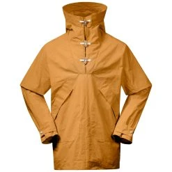 Vår prisbelønte nye anorakk er inspirert av Bergans-anorakken fra 1950-tallet – oppdatert i moderne design med unisexfasong og en generøs «oversized look». Den foldbare, vifteformede halsåpningen som lukkes med knapper i oliventre, er inspirert av lukkefunksjonen på ryggsekken 05.A i The Collection of Tomorrow.