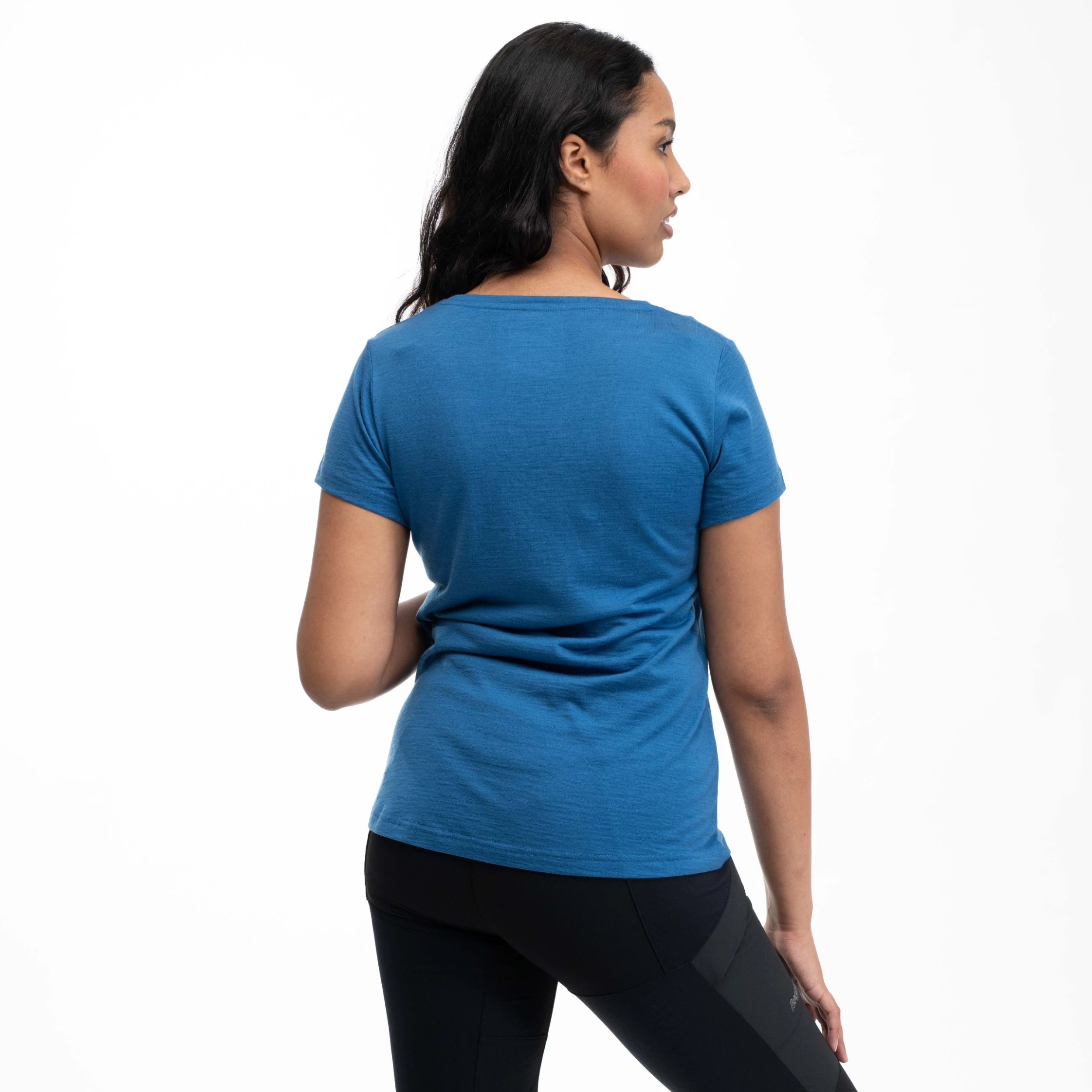 Graphic Wool W Tee er fremstilt av en blanding av merinoull og Tencel som føles svalende mot huden på varme dager, eller som varmer på kalde dager. Merinoullen varmer selv om den blir våt og kan ta opp mer enn 30 % av sin egen vekt før den føles fuktig.