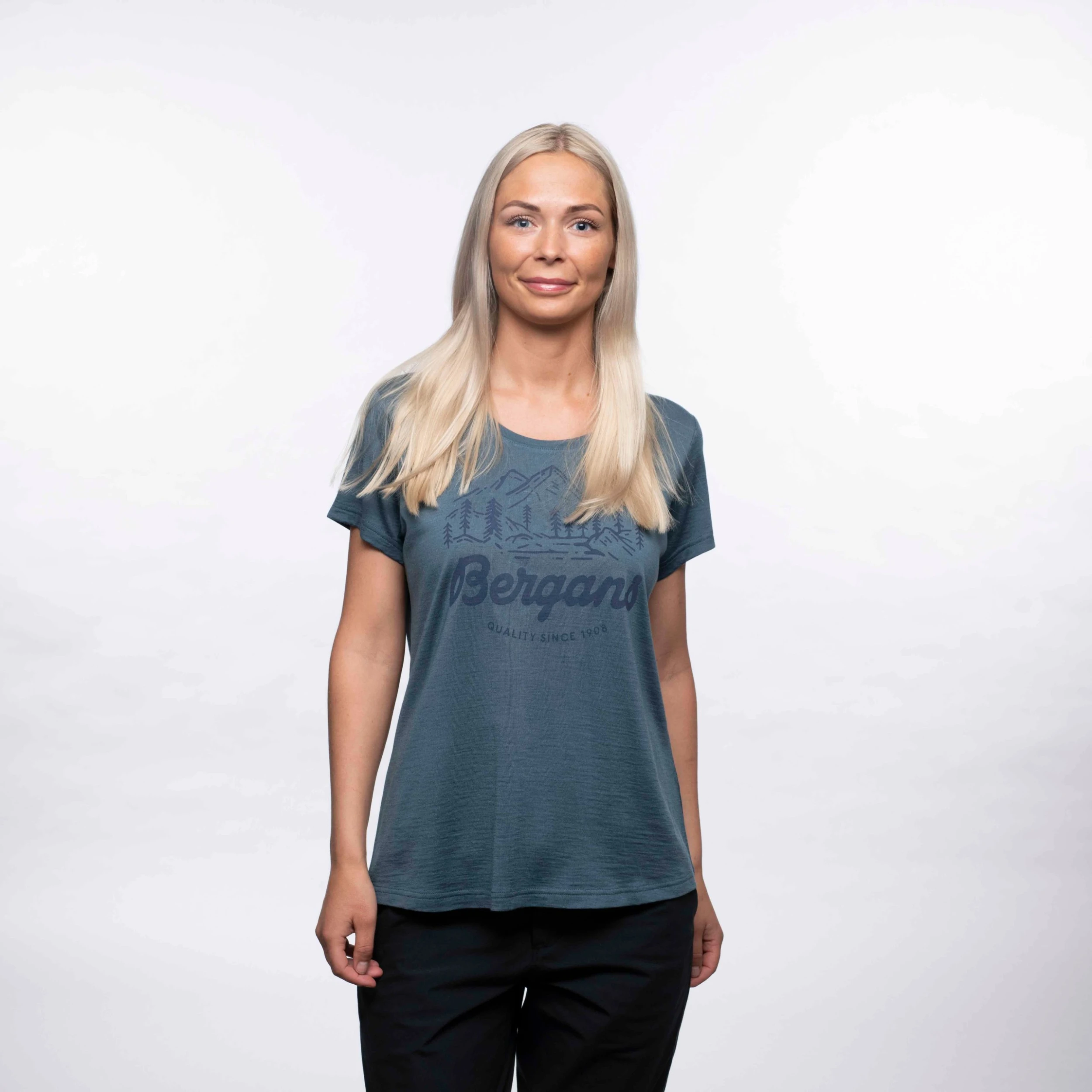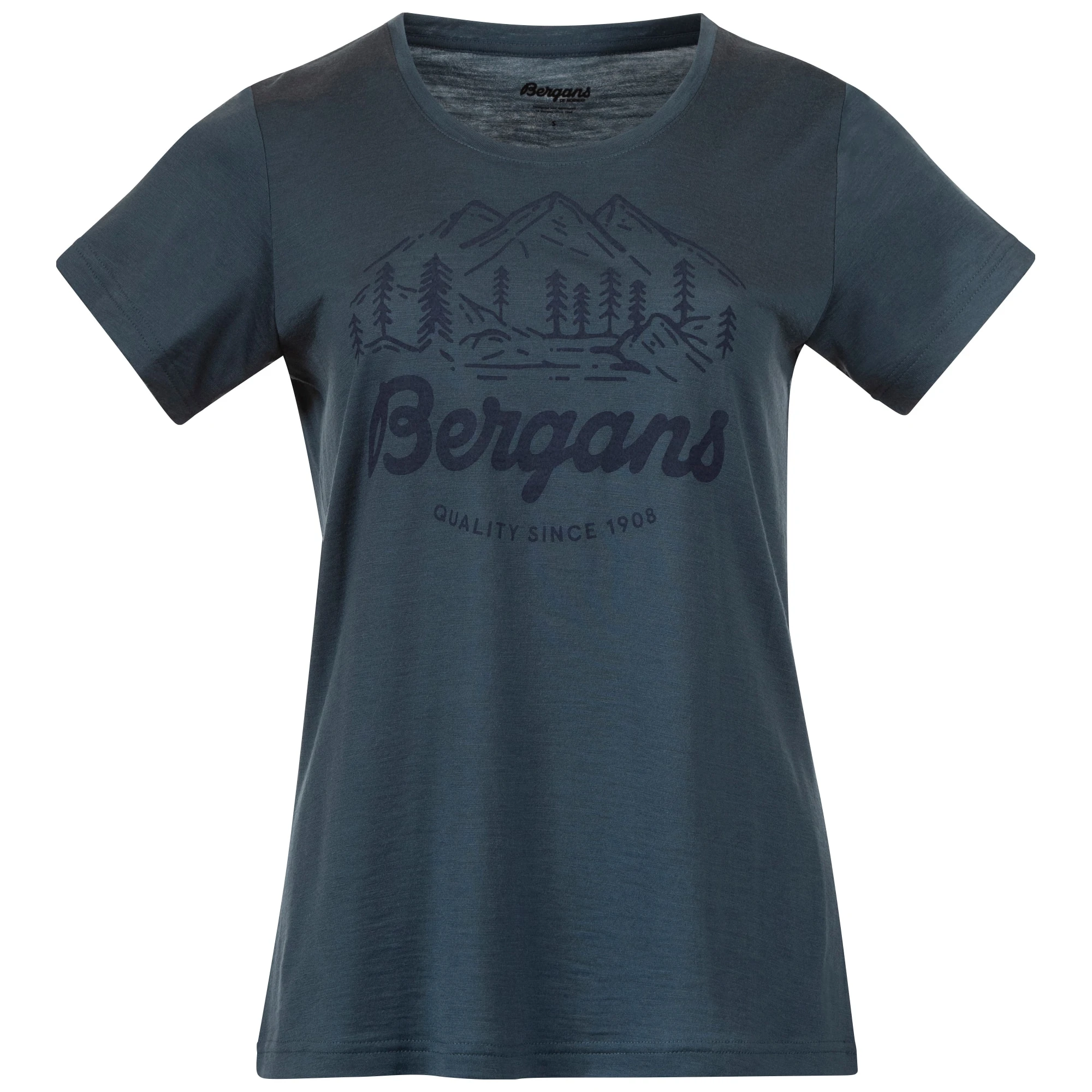 Graphic Wool W Tee er fremstilt av en blanding av merinoull og Tencel som føles svalende mot huden på varme dager, eller som varmer på kalde dager. Merinoullen varmer selv om den blir våt og kan ta opp mer enn 30 % av sin egen vekt før den føles fuktig.