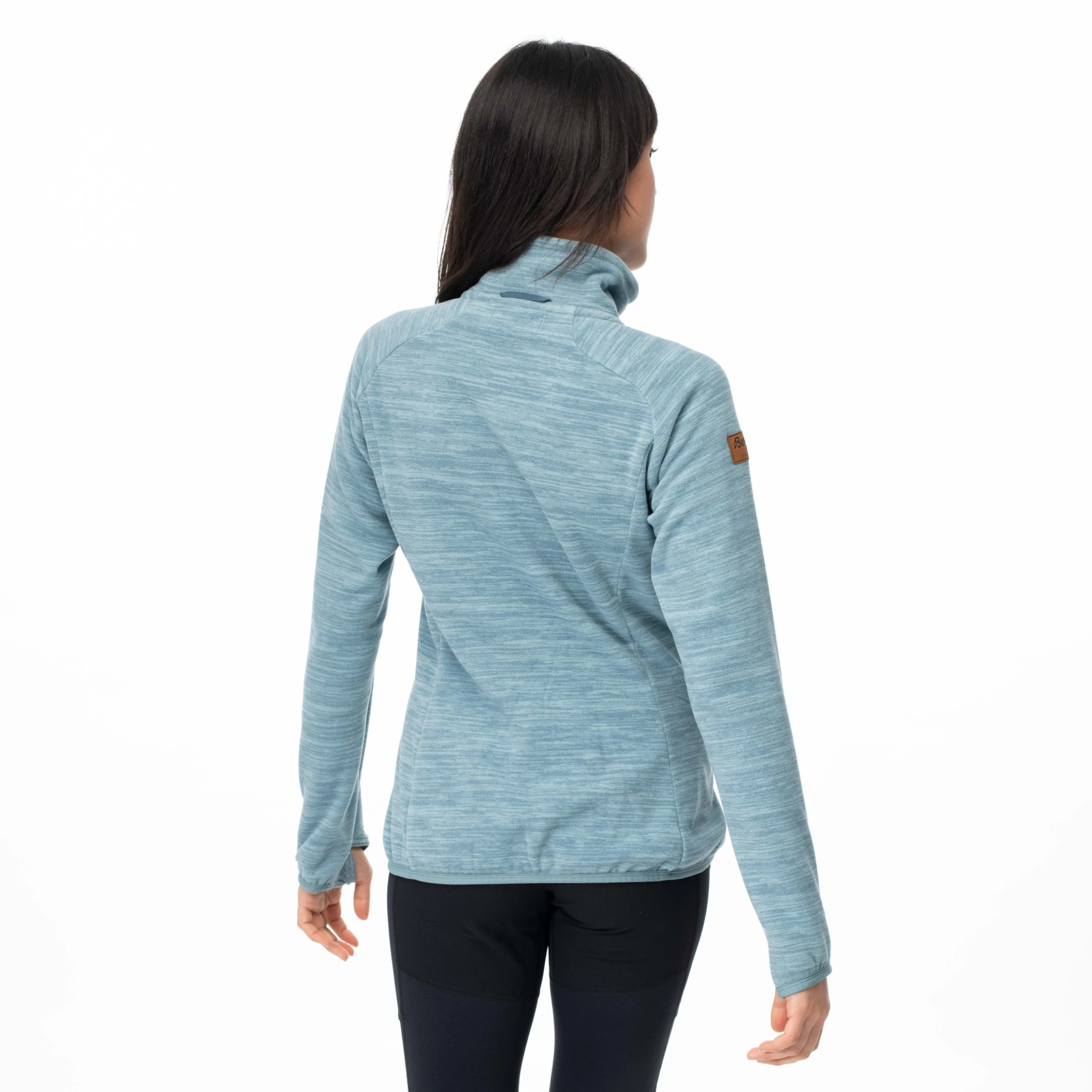 Tommelhull nederst på erme. Elastisk nederkant og ermeavslutning. Forlenget ryggparti. Sidesømmene er forskjøvet for å unngå gnaging.