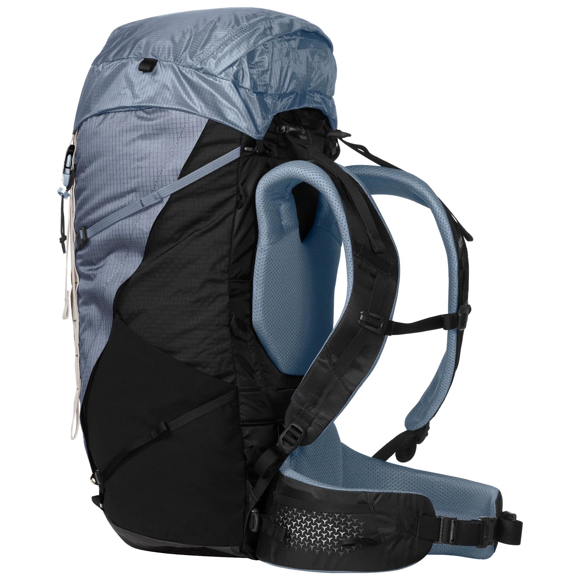 Bergans QuickAdjust™ PRO, justerbar rygglengde. Justerbare toppstrammere. Myk, behagelig og ventilerende air mesh på skulderrem og hoftebelte. Triple Density-konstruksjon. Hoftebelte med god bevegelighet. Komfortabelt Dual Density-skum med Iliac Crest Relief. Justerbart hoftebelte med Pull Forward-system. Festepunkter for pulk. Stabiliserende stropper som bedrer stabiliteten ved at ryggsekken kan trekkes nærmere kroppen. Hoftebeltet er avtakbart (sparer 165 g vekt).