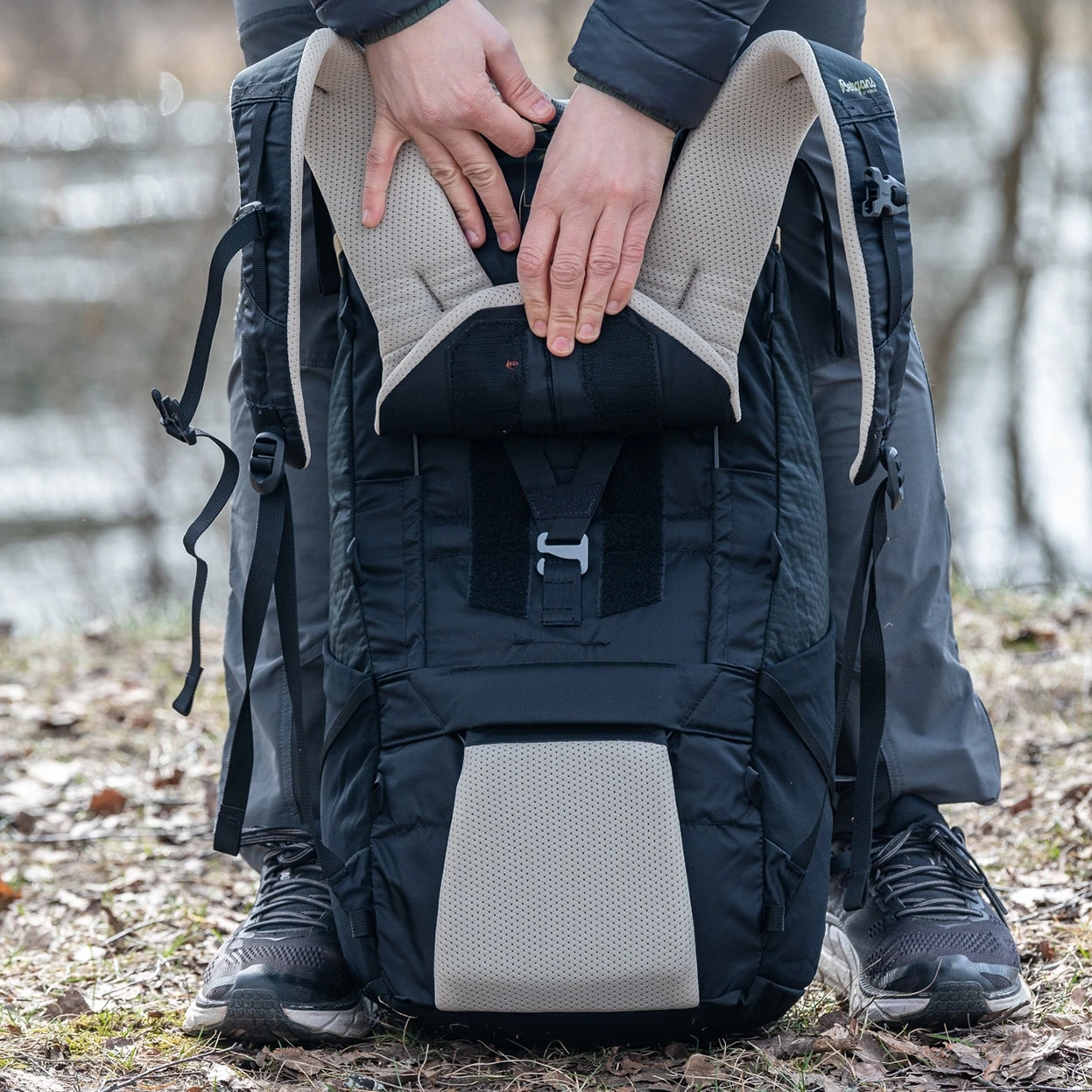 Avtakbart topplokk (sparer 55 g vekt). Høydejusterbar. Hoftebeltet og lokket kan tas av og kombineres til en liten hoftesekk.