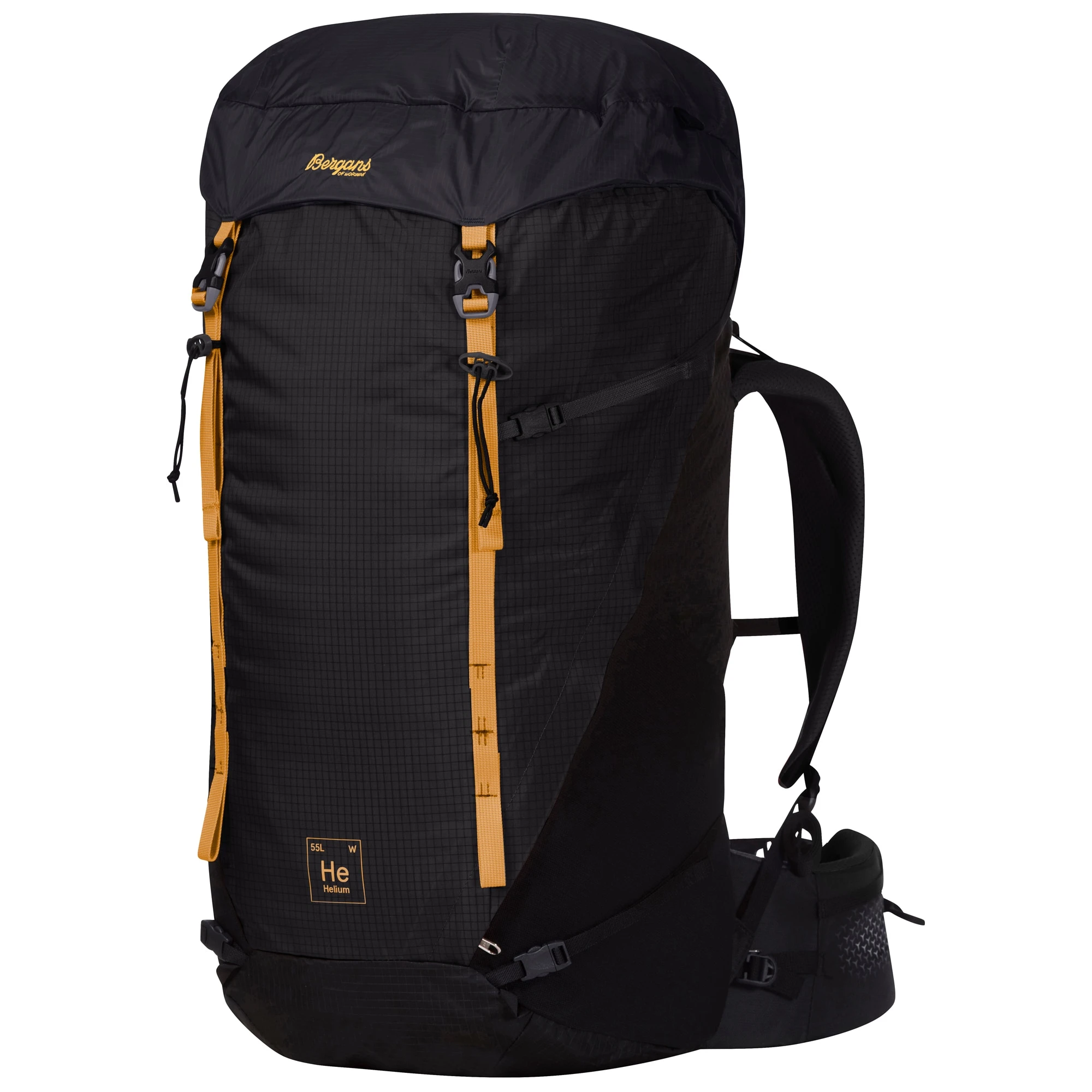 Bergans’ ultralette favoritt feirer 20-årsjubileum i 2021. Helium v5 er den siste generasjonen i en ryggsekkfamilie som har besøkt alle verdens hjørner (inkludert de tre polene) – en familie som er førstevalget til både erfarne polfarere og vanlige turgåere. Til denne femte generasjonen av Helium-ryggsekken har vi virkelig lagt oss i selen og utviklet vårt eget spesialmateriale av høykvalitets Nylon 66 og Black Dyneema® ripstop. Resultatet er et utrolig robust og slitesterkt materiale. Selv om sekken er ultralett, er det ikke kompromisset med bærekomforten. Kombinasjonen av justerbar rygglengde, skulderrem med Triple Density-skum og et formsydd hoftebelte gir en behagelig bæreopplevelse. Vekten er fortsatt blant de laveste sammenlignet med andre ryggsekker i samme størrelse og med samme bærekomfort. Helium v5 W 55 er dessuten designet slik at den kan gjøres om til en enklere og mye lettere versjon av seg selv. Hvis du vil bære virkelig lett, kan du ta av hoftebeltet og lokket og kombinere dem til en hoftesekk. Smart og enkelt! En annen forskjell sammenlignet med tidligere versjoner er den hele, diagonale glidelåsåpningen som gir deg superenkel tilgang til innholdet. Ellers er Helium fortsatt den samme allsidige og svært funksjonelle friluftssekken den alltid har vært gjennom sin 20 år lange karriere.
