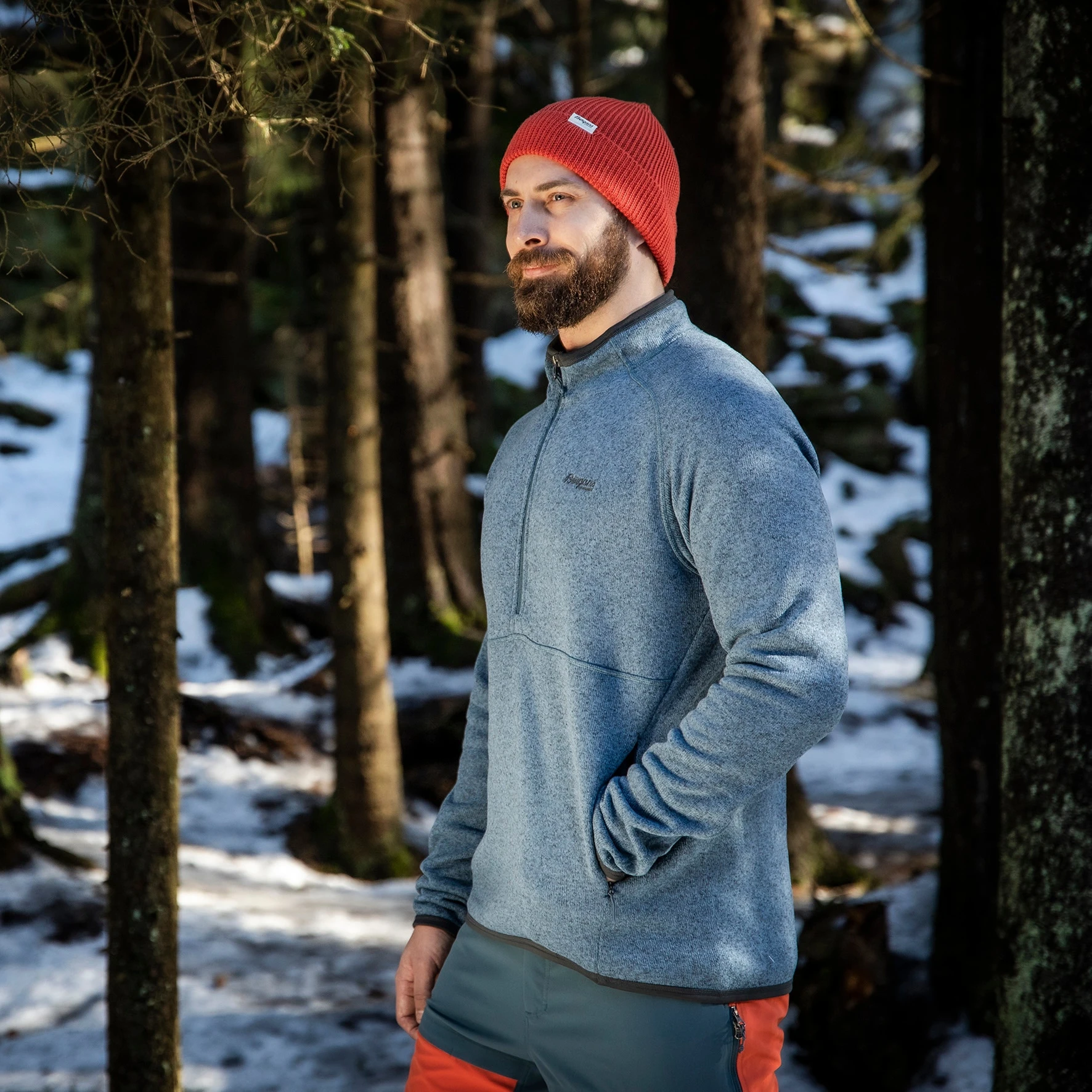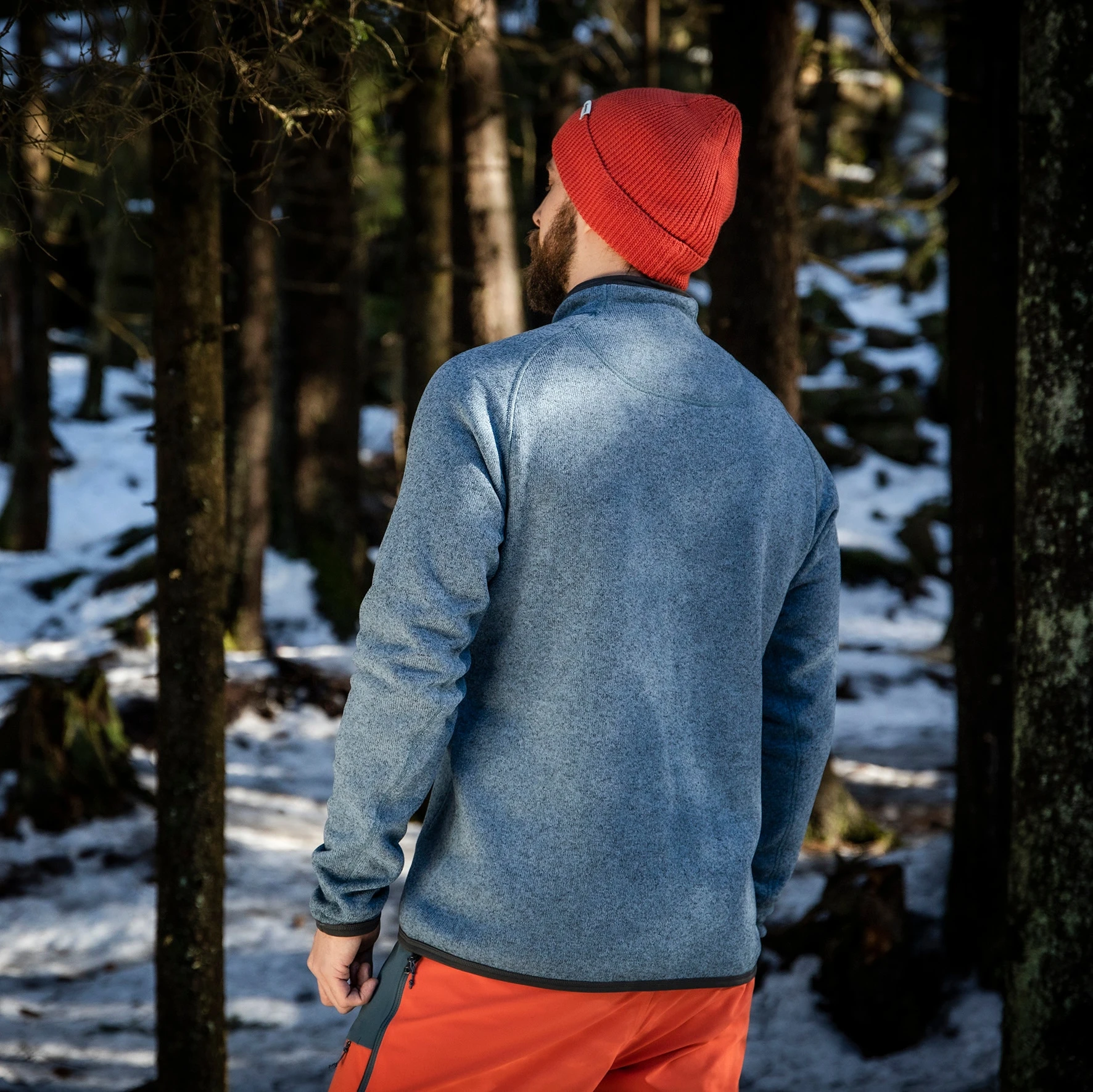 Kamphaug Knitted Half Zip er et allround mellomplagg designet for timevis med avslapping og bedagelige aktiviteter som ikke er fysisk krevende. Det perfekte leirplagget, enten du tilbringer natta i en hengekøye eller i en hytte på fjellet. Denne supermyke og komfortable genseren er laget av 100 % resirkulert polyester.