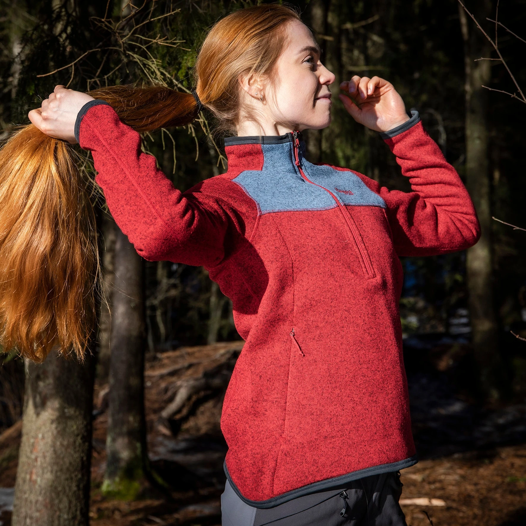 Kamphaug Knitted W Half Zip er et allround mellomplagg designet for timevis med avslapping og bedagelige aktiviteter som ikke er fysisk krevende. Det perfekte leirplagget, enten du tilbringer natta i en hengekøye eller i en hytte på fjellet. Denne supermyke og komfortable genseren er laget av 100 % resirkulert polyester.