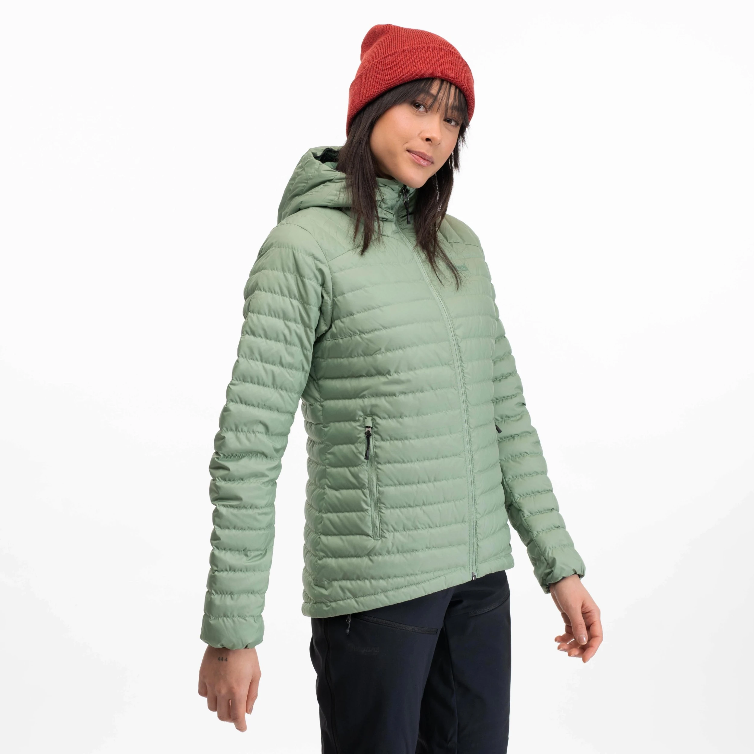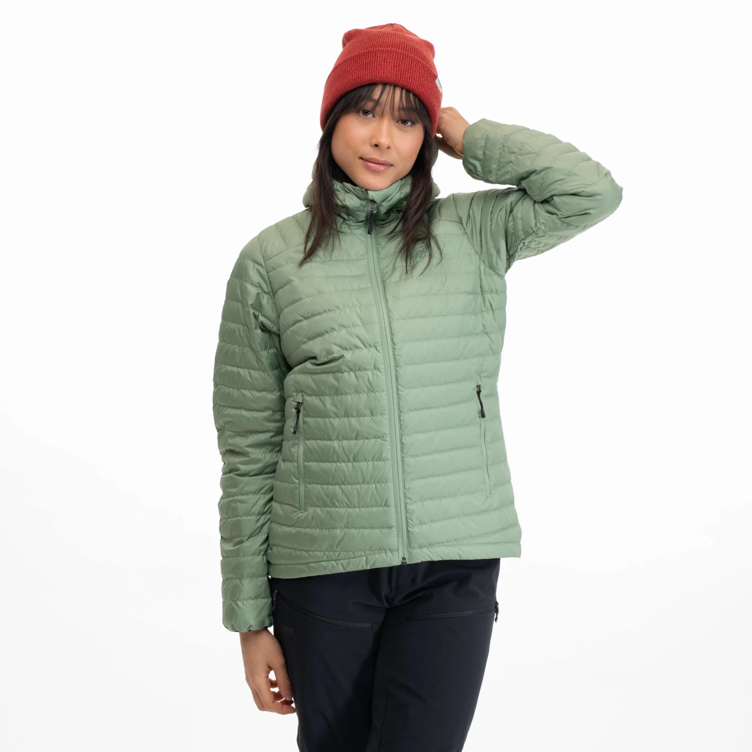 Lava Light Down Jacket W/Hood er det letteste medlemmet i Lava-kolleksjonen, men tilbyr likevel god varme og ypperlig komfort, enten du tar den med på fottur i naturen eller en spasertur i byen. En rekke funksjoner viser at dette plagget er designet med tanke på bærekraft. Resirkulert dun (80/20 RE:Down, 550 Cuin, 60 gr m/2, gjennomgående sømmer) holder godt på varmen. Det vindtette ytterstoffet er i resirkulert polyamid med PFAS-fri impregnering. Den perfekt tilpassede hetten gir også god beskyttelse for hodet når du trenger det. Lava Light Down Jacket er et godt valg hvis du er ute etter en allsidig jakke som kan fungere som et ekstra isolasjonslag. Den normale passformen gjør den perfekt for bruk under andre klær, for eksempel skallplagg. Lava Light Down Jacket W/Hood er svært komprimerbar og kan enkelt brettes sammen i sin egen kompresjonslomme. Super å putte i sekken eller vesken på kjøligere dager.