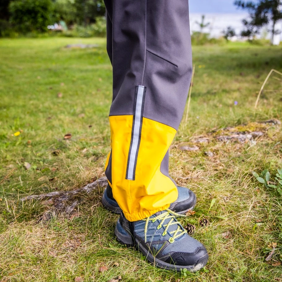 Forsterkning på albue, knær, sete og nederst på bukseben.
