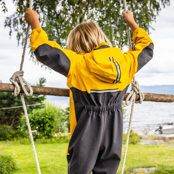 Lilletind Kids Coverall er laget av vanntett, vindtett og pustende 2-lags Bergans Element Active®-materiale (vannsøyle: min. 10.000 mm). Lekedressen har rikelig med refleksdetaljer og er forsterket på albuene, knærne, i baken og på innsiden av beina. Lilletind Kids Coverall passer utmerket til lek i barnehagen og på fritiden.