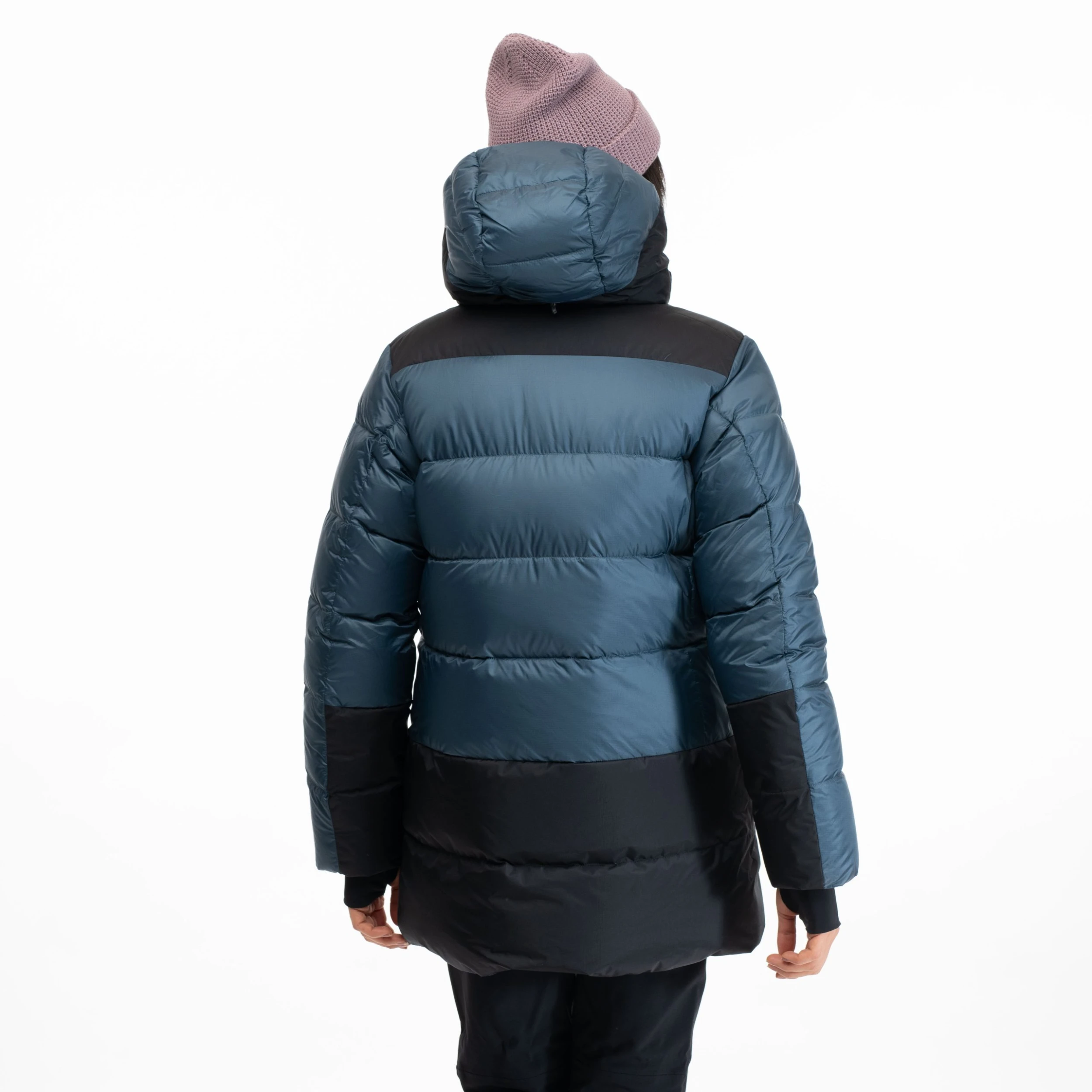 Vindtett materiale i resirkulert polyamid med PFAS-fri impregnering. Sparer energi og fossile ressurser ved å gjenbruke restematerialer fra produksjonen. PFAS-fri WR: vannavstøtende finish uten bruk av skadelige kjemikalier. Forsterket materiale på utsatte områder gir ekstra beskyttelse. Isolert med 100 % resirkulert dun hele veien rundt og PrimaLoft® Black insulation Eco (80 % resirkulert polyester) på utsatte områder, over dunkanalene, for ekstra varmebeskyttelse. Sparer naturressurser ved å gjenbruke dun og fjær fra dyner og yttertøy. Produktet inneholder bluesign®-godkjente materialer og detaljer, noe som garanterer sikker kjemisk håndtering i produksjonen.