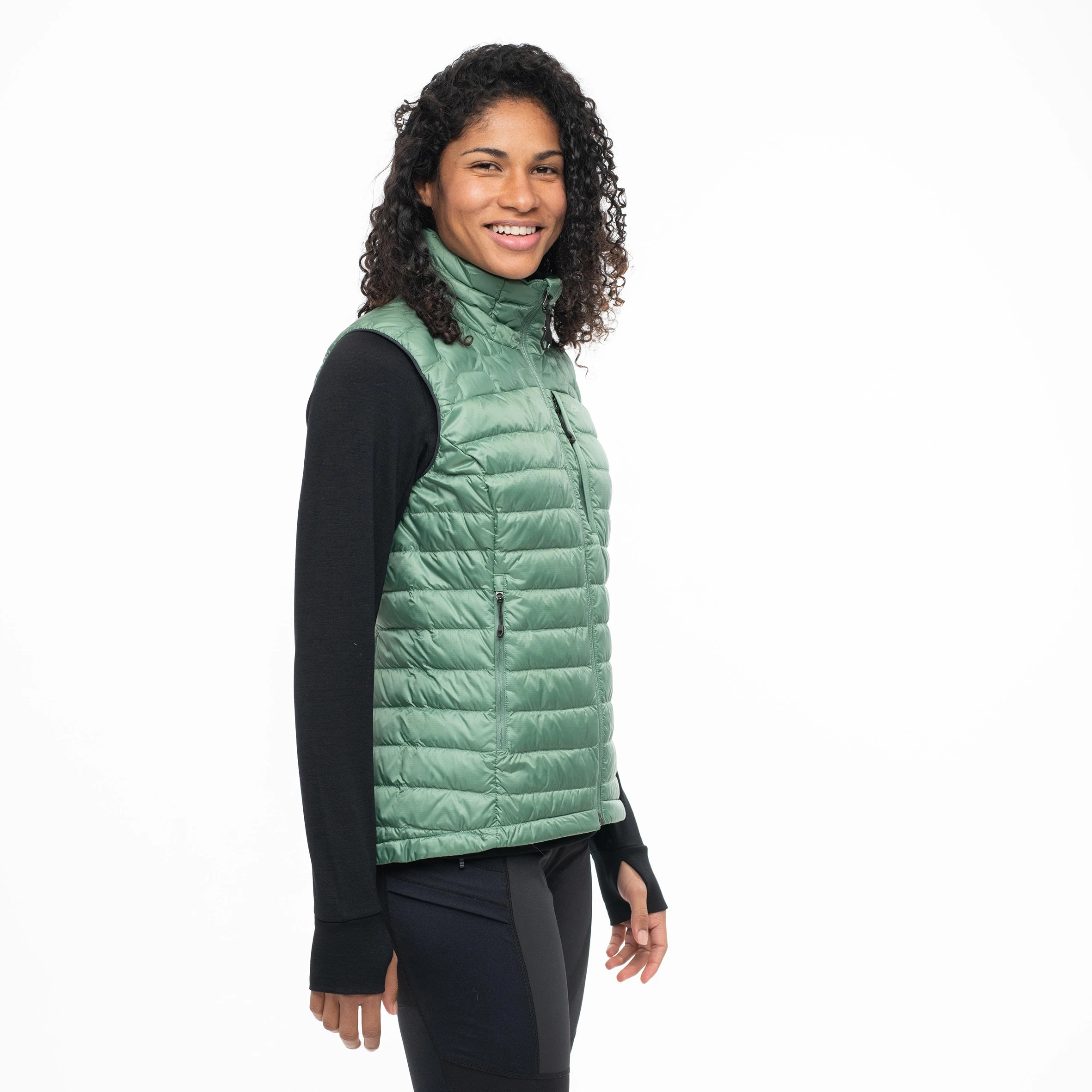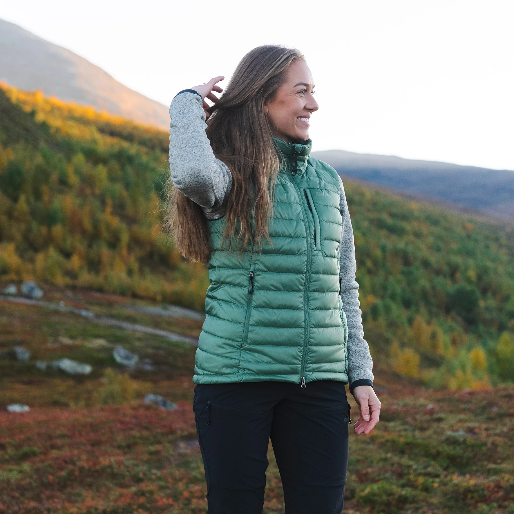 Magma Light Down Vest er et lett, teknisk plagg med alle funksjoner, perfekt å bruke alene eller for å få litt ekstra varme. 100 % resirkulert dun av høy kvalitet (90/10 RE:Down, 700 Cuin, 60 gr m/2) gir god isolasjonsevne og viser at dette plagget er designet med tanke på bærekraft. Det samme gjelder det vindtette hovedmaterialet i resirkulert polyamid, som også er behandlet med PFAS-fri impregnering. Magma Light Down Vest er svært komprimerbar og kan enkelt skjules i den tilhørende kompresjonslommen. Hvis du ikke har en dunvest i turgarderoben din, bør du skaffe deg en.