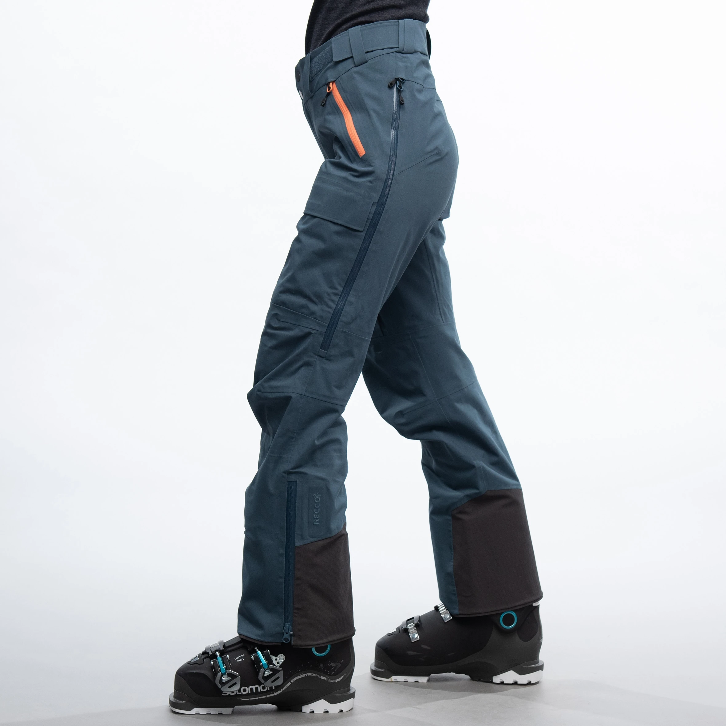 Recco®-søkebrikke nederst på buksebenet. Borrelåsjustering i livet. Beltehemper og innvendige bukseselehemper. Formsydd kneparti. Forsterket nederst på bena og ekstra forsterkning på innsiden for økt slitestyrke. Glidelås og kile nederst for å tilpasse benvidden etter fottøyet.