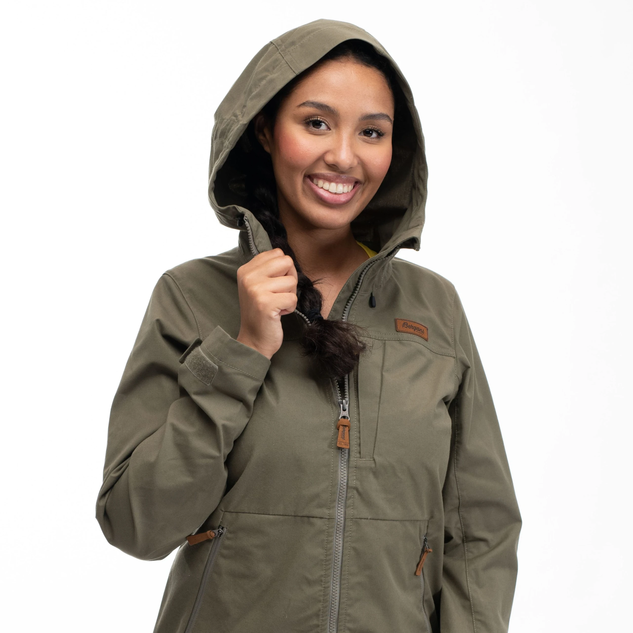 Nordmarka Leaf Light Wind Jacket ser umiddelbart klassisk og retro ut, men ved nærmere øyesyn vil du oppdage et plagg som er teknisk og moderne ned til minste detalj. Det første du legger merke til, er den myke følelsen til det PFAS-frie materialet, som er en blanding av resirkulert polyester fremstilt av PET-flasker, og økologisk bomull. Deretter vil du oppdage den lave vekten og den høye graden av komprimerbarhet, som gjør at plagget er enkelt å pakke og tar svært liten plass i sekken. En justerbar hette er alltid kjekt å ha når vinden blåser fra alle kanter. Det samme gjelder de romslige frontlommene, som har plass til både det du trenger og til å varme hendene i.