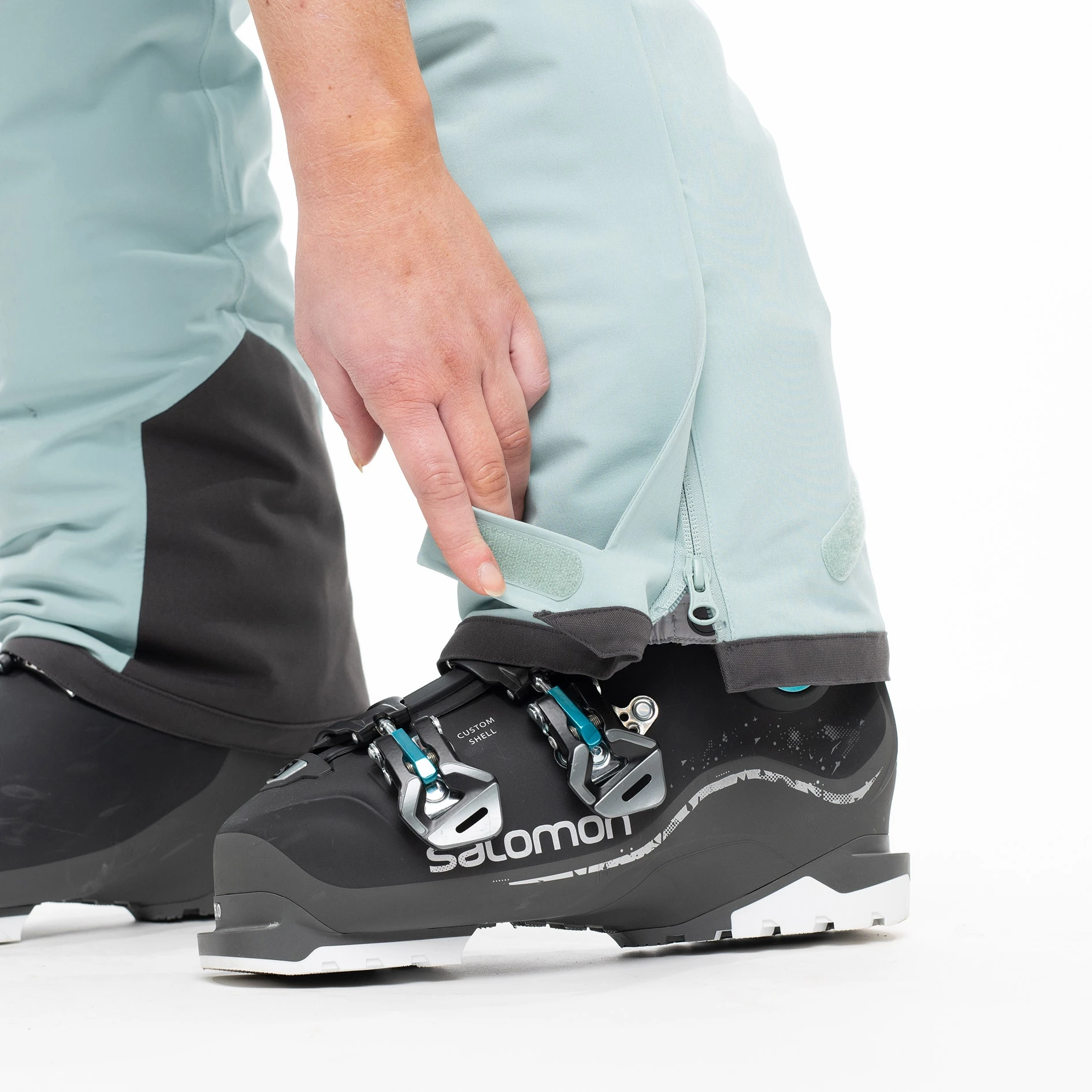 Innvendig, fast gamasje med innvendig friksjonsstrikk. Hempe for feste av gamasjestrikk.