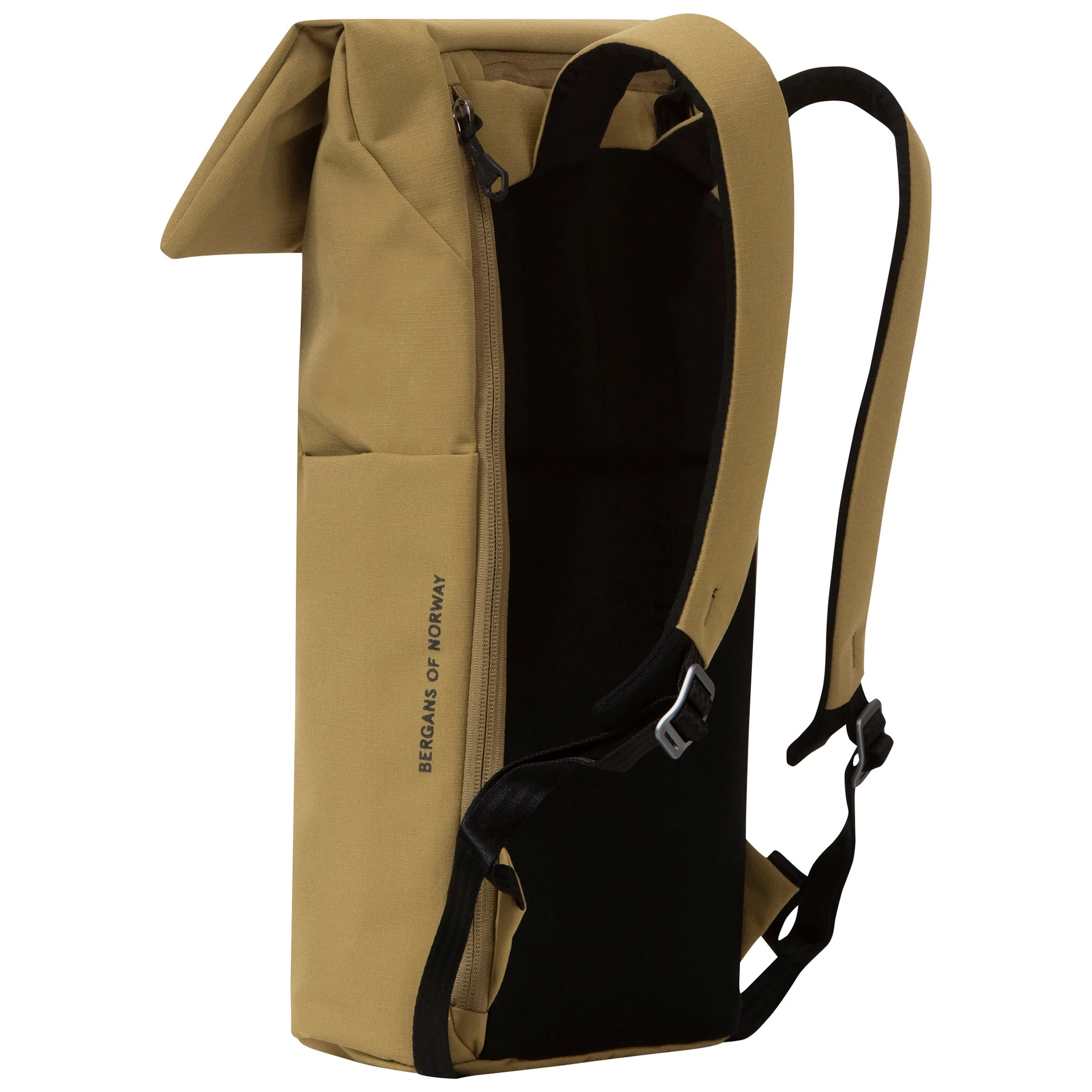 Oslo Urban Daypack er en praktisk og allsidig hverdagssekk spekket med gode løsninger. Rulletoppen festes med en magnetlås som gjør det raskt og enkelt å pakke og komme seg av gårde. Glidelås øverst sikrer at innholdet ligger trygt forvart. Hvis du plutselig trenger mer plass i ryggsekken, kan du bare bruke den uten å rulle ned toppen. Da får du flere liters ekstra volum. Oslo Daypack har en polstret ytterlomme som beskytter laptopen din. Ryggpartiet er ergonomisk utformet for å følge ryggen og bøyer seg etter skuldrene når du sykler. Et resirkulert materiale fremstilt av PET-flasker og resirkulert nylon var et naturlig valg for å redusere produktets klimaavtrykk.