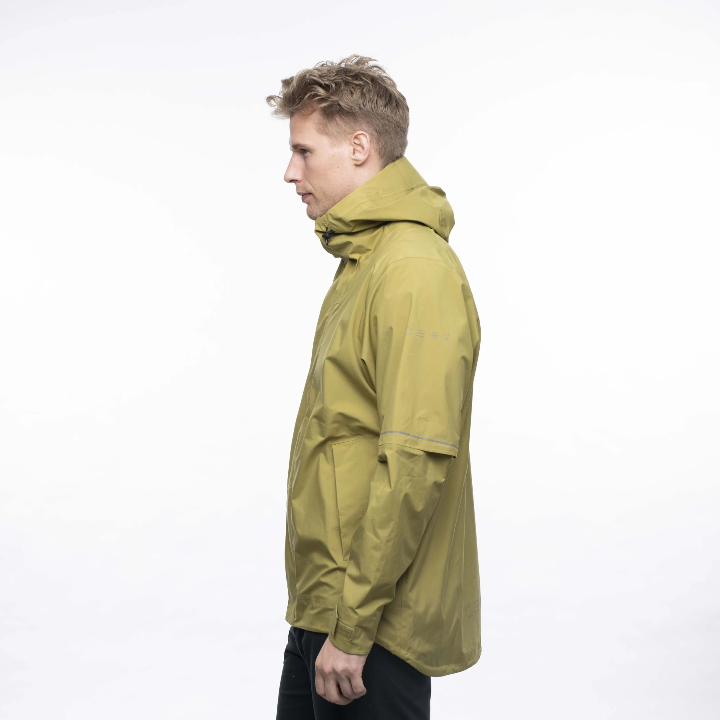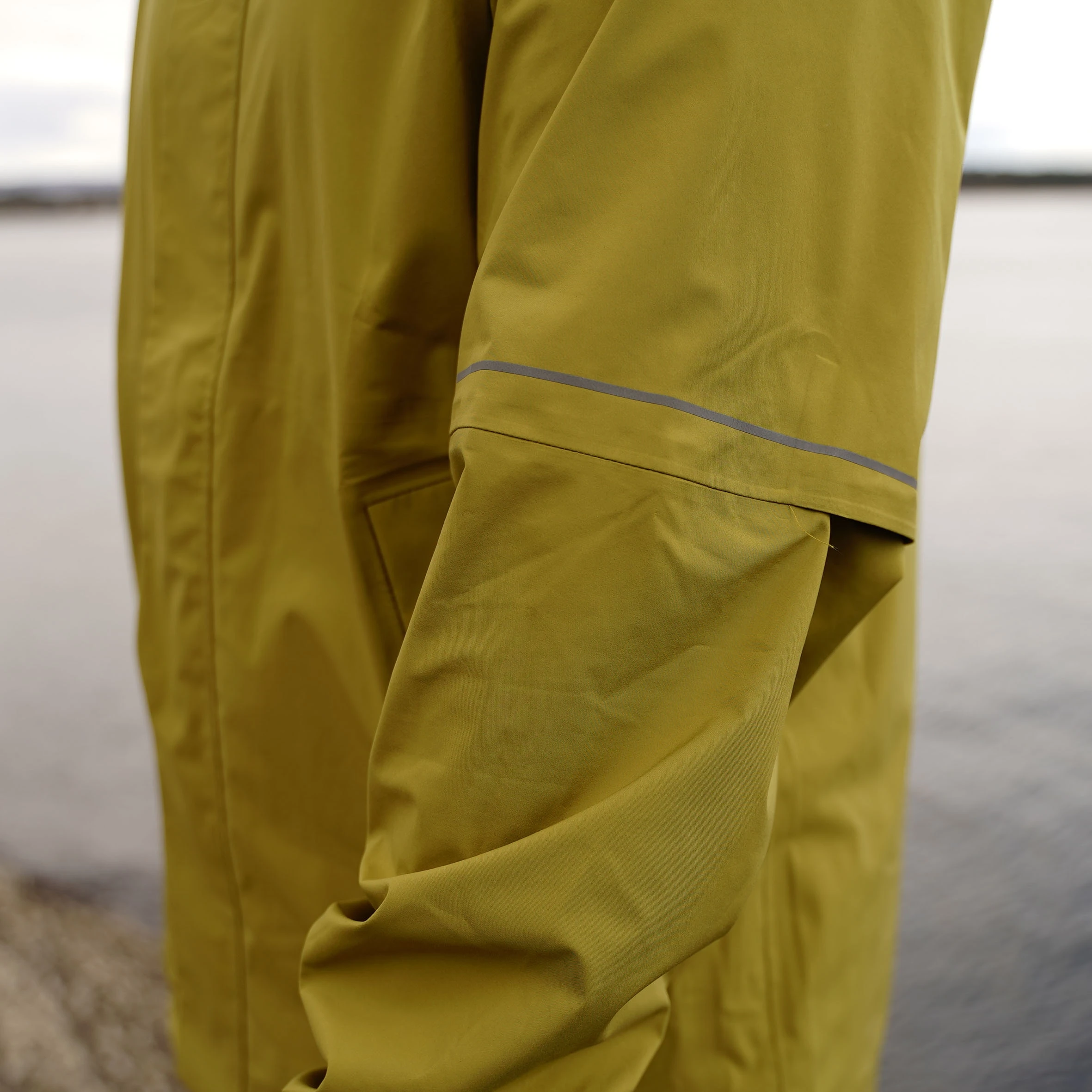 Oslo Urban Rain Shell Jacket er en teknisk regnjakke med en boksformet passform designet til hverdagsbruk. Den veier lite og gir god bevegelsesfrihet. Materialet er vanntett (vannsøyle: min. 10 000 mm), vindtett og pustende. For å sikre materialets vannavvisende egenskaper er det også behandlet med en PFAS-fri impregnering. Graden av værbeskyttelse og detaljene på jakken viser tydelig at dette er et plagg som har blitt utviklet spesielt for pendlere og urbane syklister. Hetten er tilpasset hjelm og kan enkelt justeres til hodestørrelsen. To romslige frontlommer er kjekke å ha til småting eller bare for å stikke hendene i. Den har også en lomme i korsryggen. Veldig praktisk siden den er enkel å nå mens du sykler.