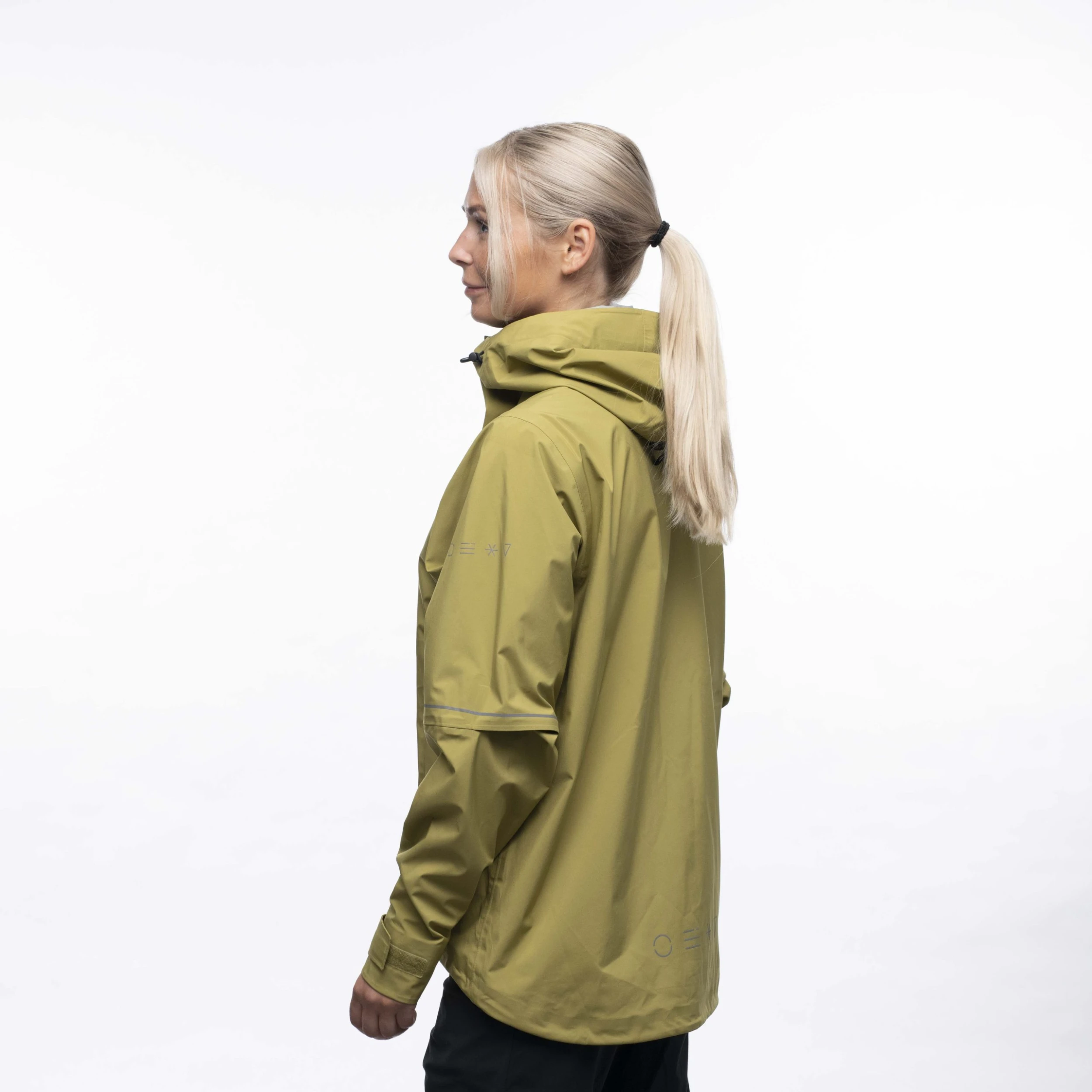 Oslo Urban Rain Shell Jacket er en teknisk regnjakke med en boksformet passform designet til hverdagsbruk. Den veier lite og gir god bevegelsesfrihet. Materialet er vanntett (vannsøyle: min. 10 000 mm), vindtett og pustende. For å sikre materialets vannavvisende egenskaper er det også behandlet med en PFAS-fri impregnering. Graden av værbeskyttelse og detaljene på jakken viser tydelig at dette er et plagg som har blitt utviklet spesielt for pendlere og urbane syklister. Hetten er tilpasset hjelm og kan enkelt justeres til hodestørrelsen. To romslige frontlommer er kjekke å ha til småting eller bare for å stikke hendene i. Den har også en lomme i korsryggen. Veldig praktisk siden den er enkel å nå mens du sykler.
