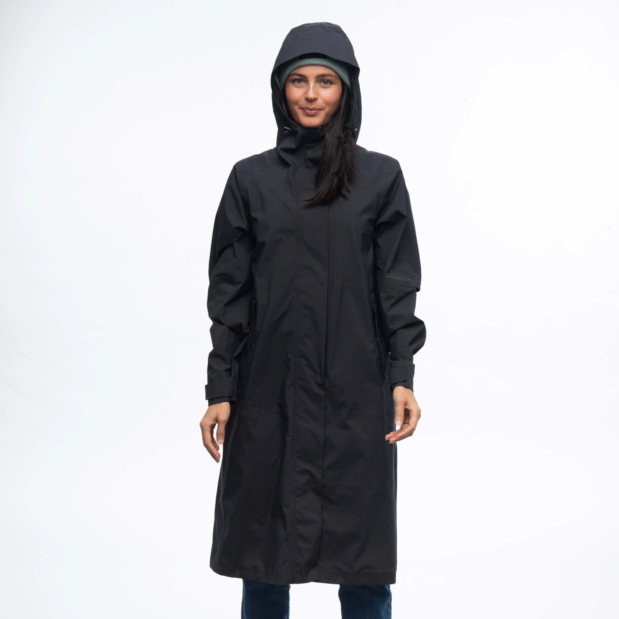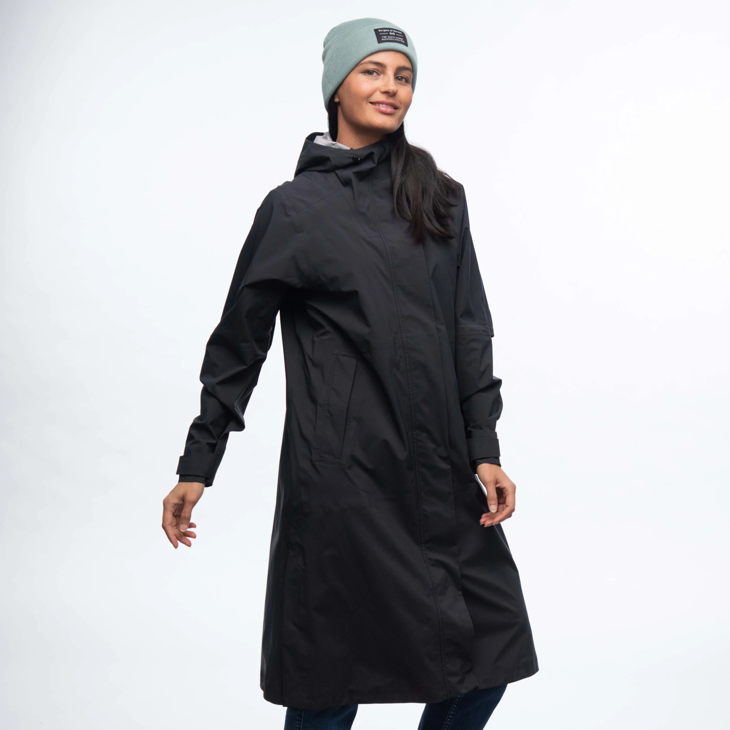 Oslo Urban W Coat er designet for alle dere hverdagshelter som sykler eller går uansett vær, og for å hylle alle dere kalde og våte supermenn og -kvinner som tålmodig står og venter på kollektivtransporten. Denne knelange regnjakken med klassisk snitt er laget for å beskytte deg mens du kjemper deg tappert frem gjennom den urbane jungelen. Den er lett, vanntett (vannsøyle min. 10 000) og fremstilt av mer bærekraftige materialer. Detaljene er tydelig designet for pendlere, både de som går og sykler. For å gjøre det enkelt og tryggere å sykle er frontglidelåsen litt kortere, slik at bena får full bevegelsesfrihet. Selvsagt har den også store lommer som er perfekte for å varme kalde hender. Hetten er tilpasset hjelm, men kan raskt og enkelt justeres i størrelsen.