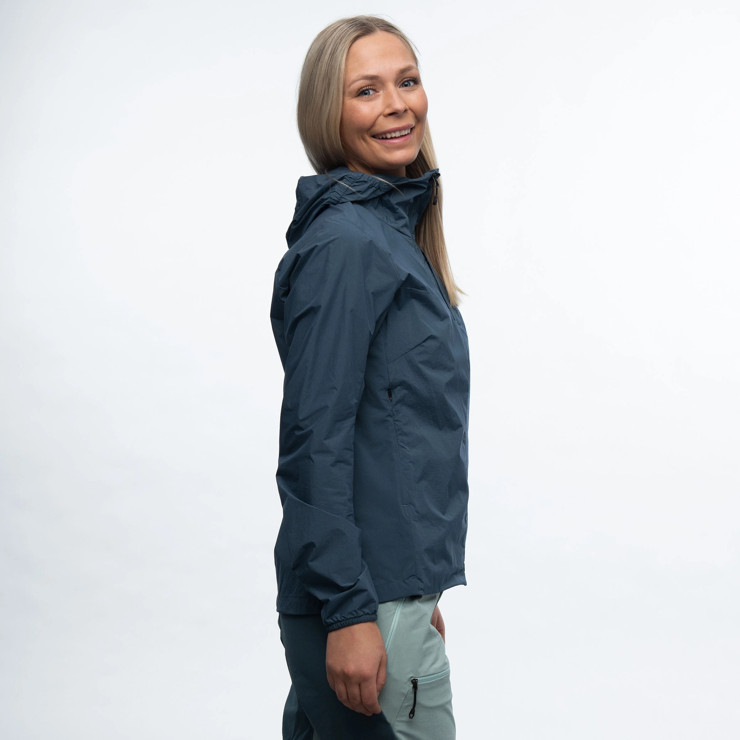 En kombinasjon av to lette og elastiske softshellmaterialer, begge med PFAS-fri impregnering. Et lett og vindtett materiale foran og bak og et ventilerende materiale under erme og i sidene, der du trenger ekstra ventilasjon. Lav vekt og lite pakkvolum. Produktet inneholder bluesign® APPROVED materialer og detaljer.