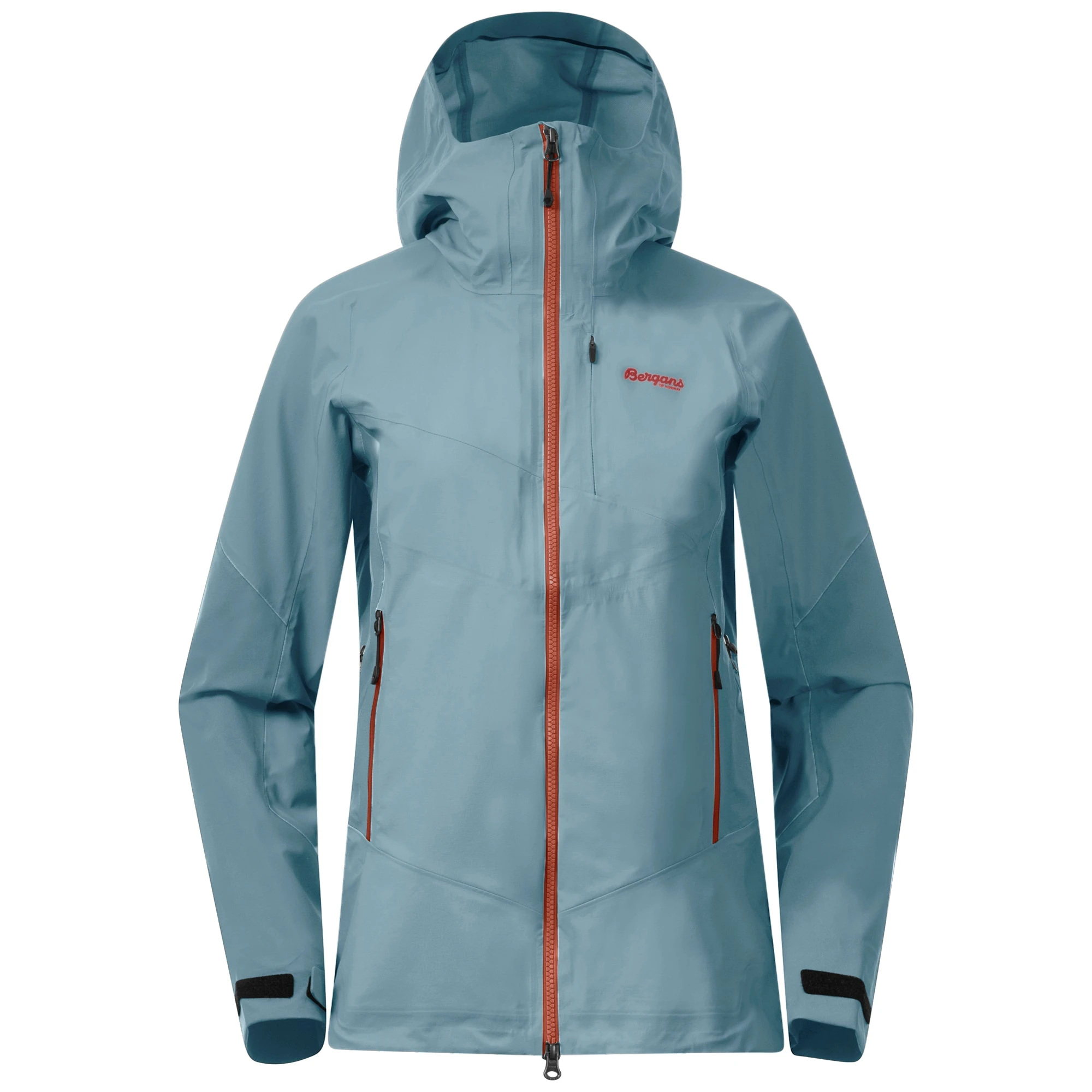 Vannavvisende frontlommer med glidelås og skjult, vannavvisende brystlomme. Frontlommene er plassert slik at de ikke kommer i konflikt med klatreseler eller hoftebelte ved bæring av sekk.