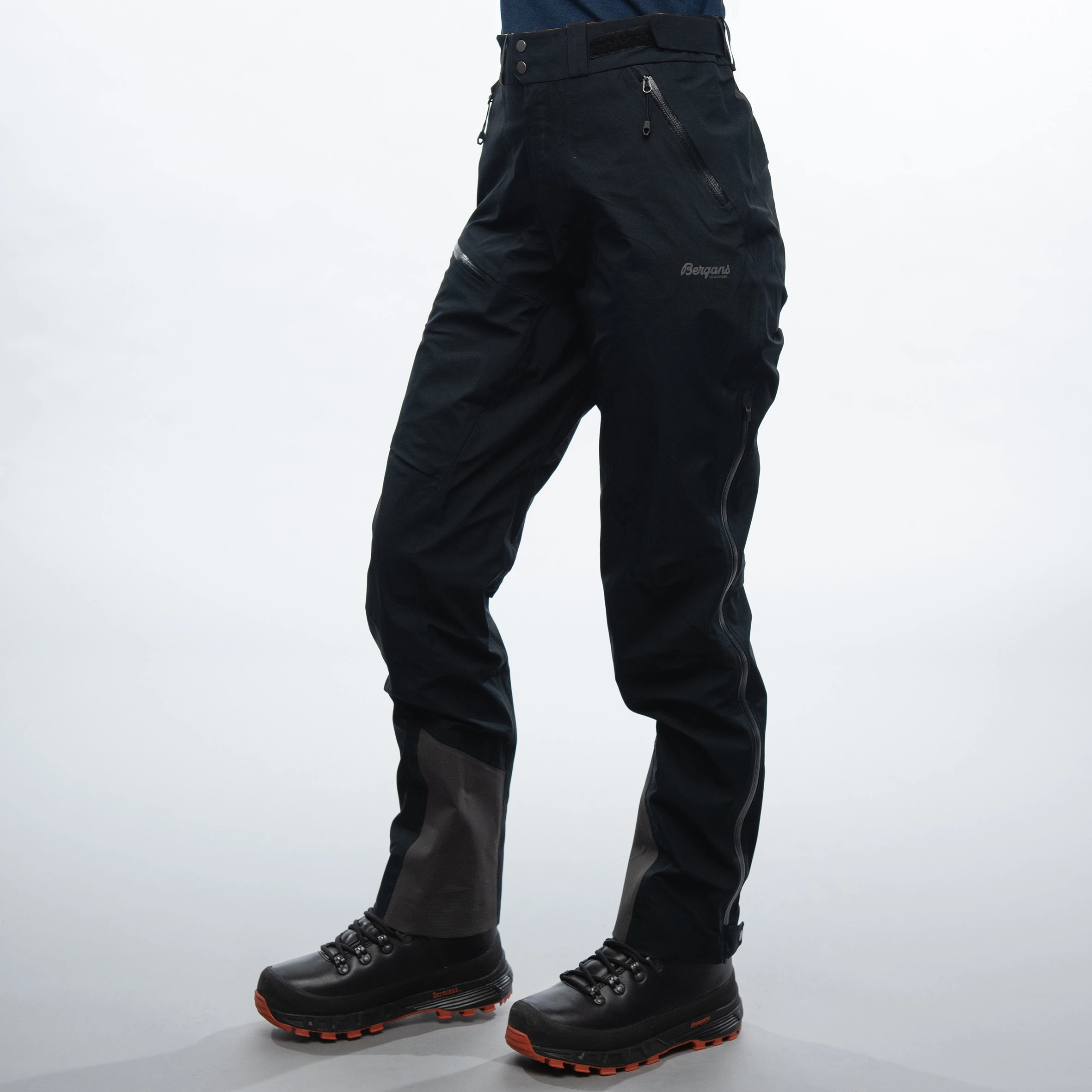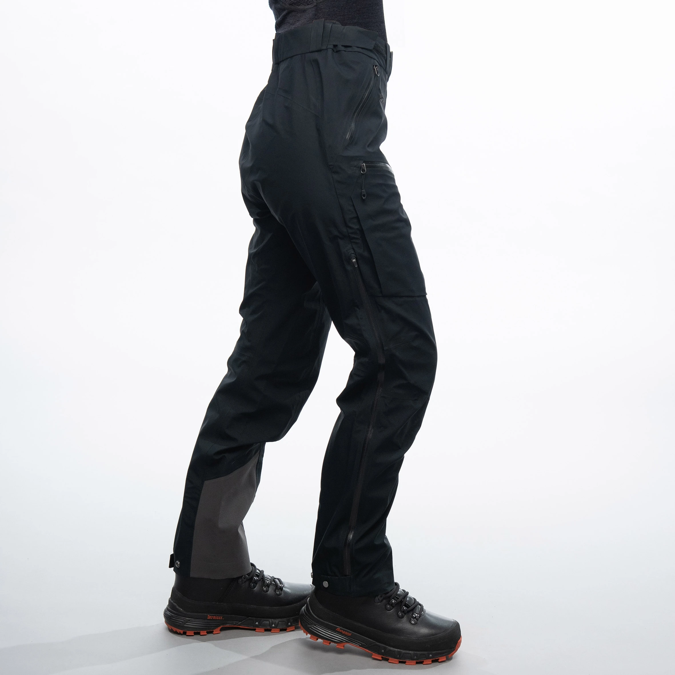 Lange ventilasjonsglidelåser på utsiden av lårene og trykknapp nederst på bena. Romslig nok til å kunne ta den på over fjellsko. Borrelåsjustering i livet gir ekstra vidde for optimal ventilasjon under aktivitet med høy intensitet.