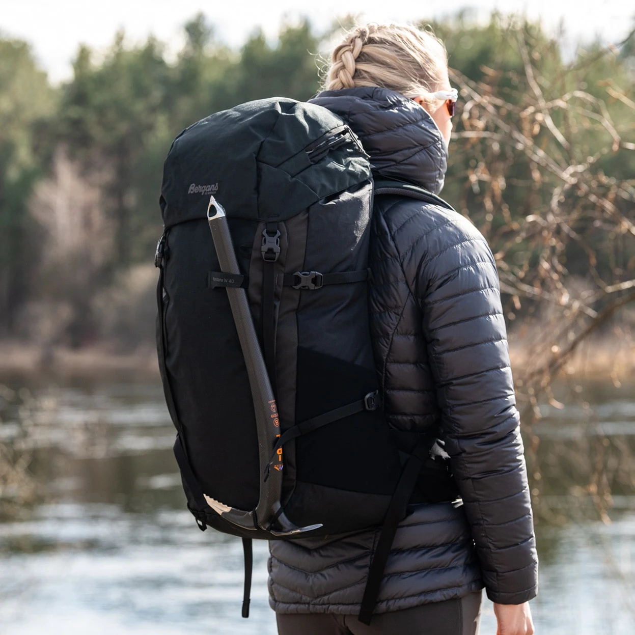 Bergans QuickAdjust™ PRO, justerbar rygglengde. Ventilerende Bergans FlowPanel i ryggflaten. Toppstrammere. Vattert hoftebelte og skulderrem.