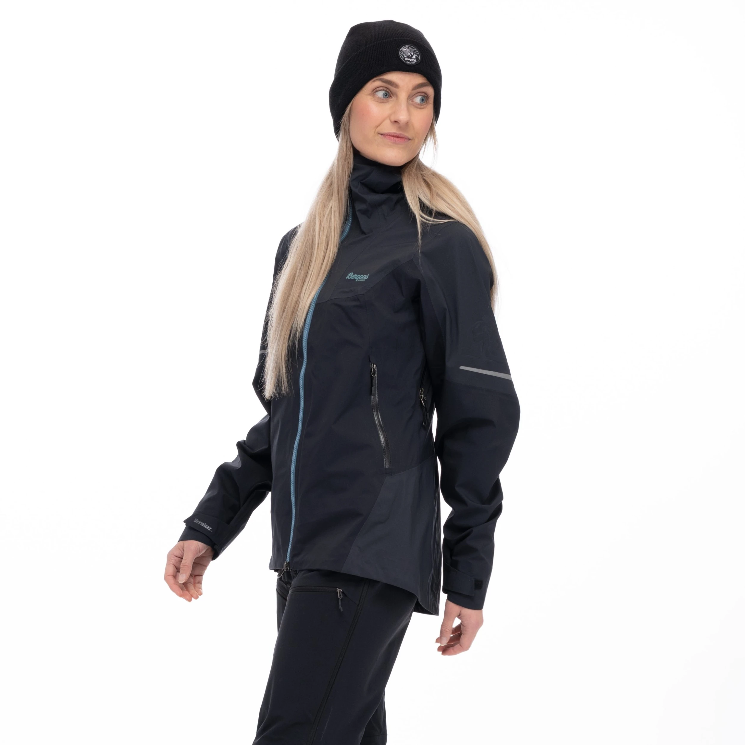 3-lags Dermizax®NX: Vanntett (vannsøyle: min. 20 000 mm), vindtett og enestående pustende egenskaper. Komfortabelt, hurtigtørkende og fuktabsorberende materiale i halsen, på hakebeskyttelsen og i nakken. Produktet inneholder bluesign® APPROVED fabrics and trimmings.