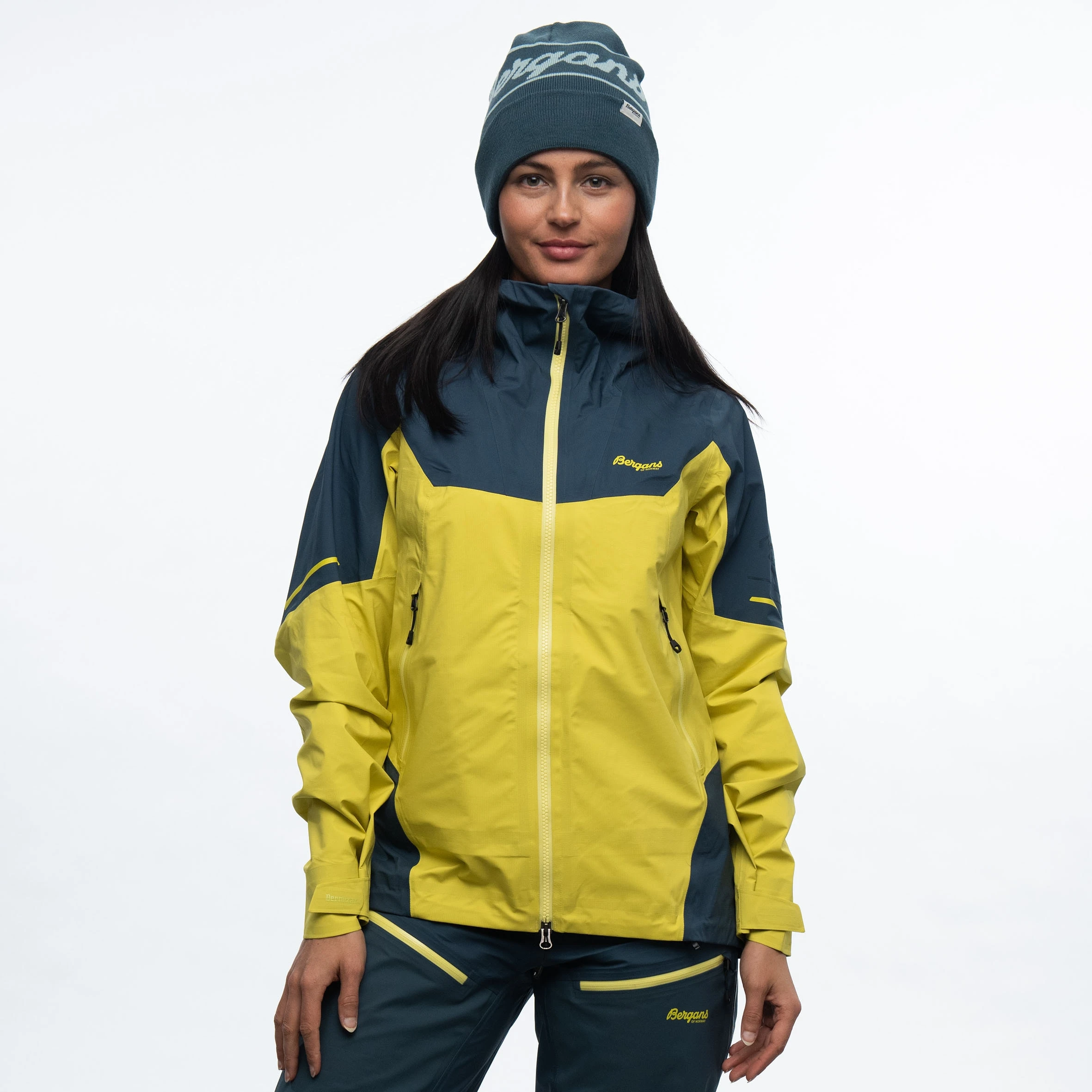 3-lags Dermizax®NX: Vanntett (vannsøyle: min. 20 000 mm), vindtett og enestående pustende egenskaper. Komfortabelt, hurtigtørkende og fuktabsorberende materiale i halsen, på hakebeskyttelsen og i nakken. Produktet inneholder bluesign® APPROVED fabrics and trimmings.