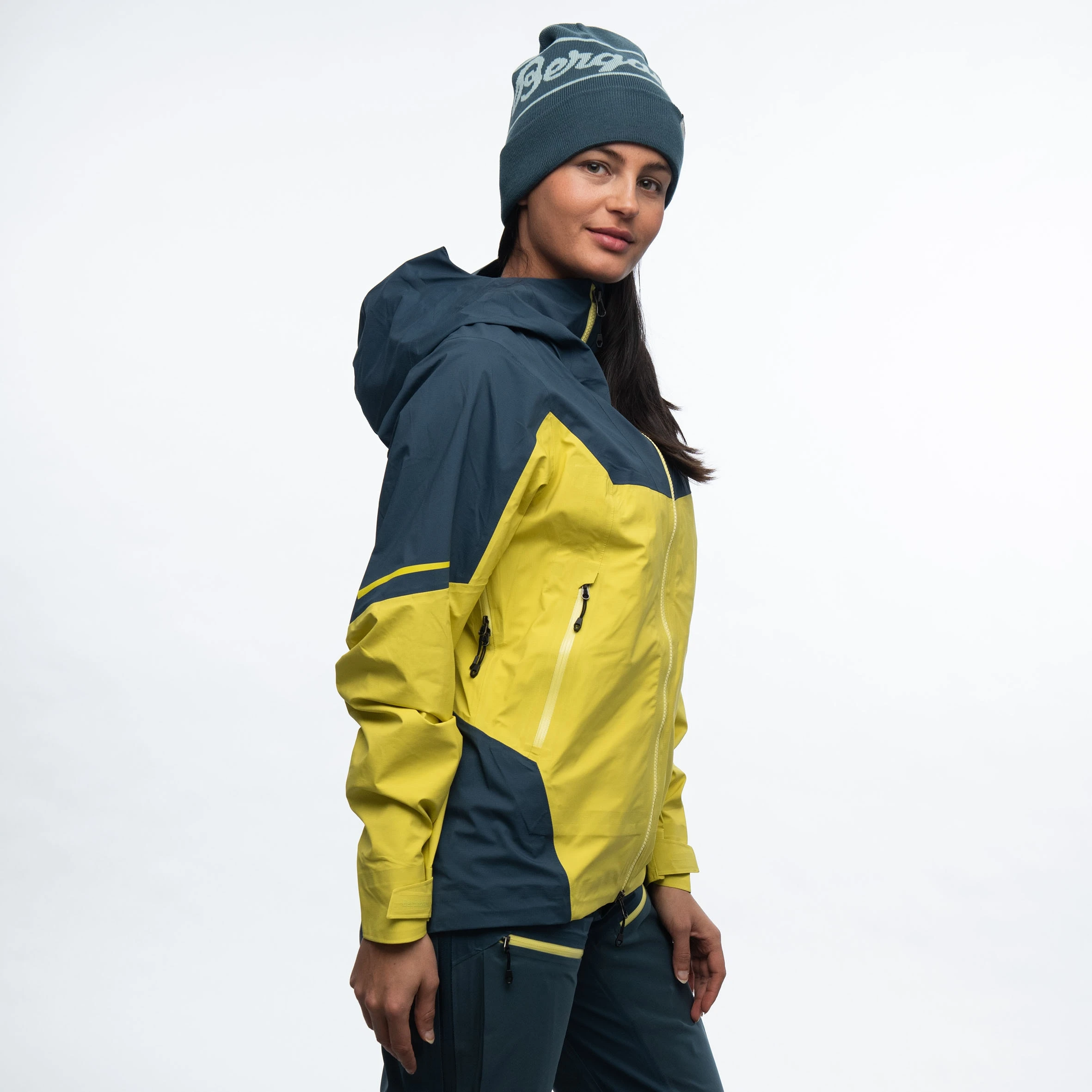 3-lagsmaterialet Dermizax®NX er mykt og lett, likevel kan du kjenne at det er slitesterkt nok til å tåle årevis med hard bruk. Materialet er også blant de beste når det kommer til værbeskyttelse og fukttransport, – vannsøyle min. 20 000 mm, fukttransport over 30 000 g/m2/24t. Over til detaljene. I bratt stigning blir du raskt varm og behovet for maksimal luftgjennomstrømning i jakken melder seg. Derfor er Senja 3L W Jacket utstyrt med lange ventilasjonsglidelåser under ermene og 2-veis glidelås i front. Den ekstra høye kragen beskytter hals og nakke mot vind og snø, og den hjelmtilpassede hetten er lett å justere, slik at du har optimal sikt til enhver tid. For å gi deg økt komfort har vi også lagt til et fuktabsorberende og hurtigtørkende materiale i halsen og på hakebeskyttelsen på jakken.