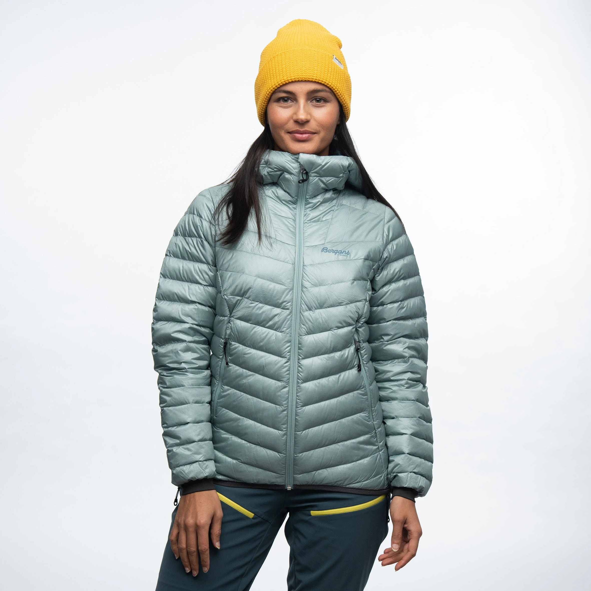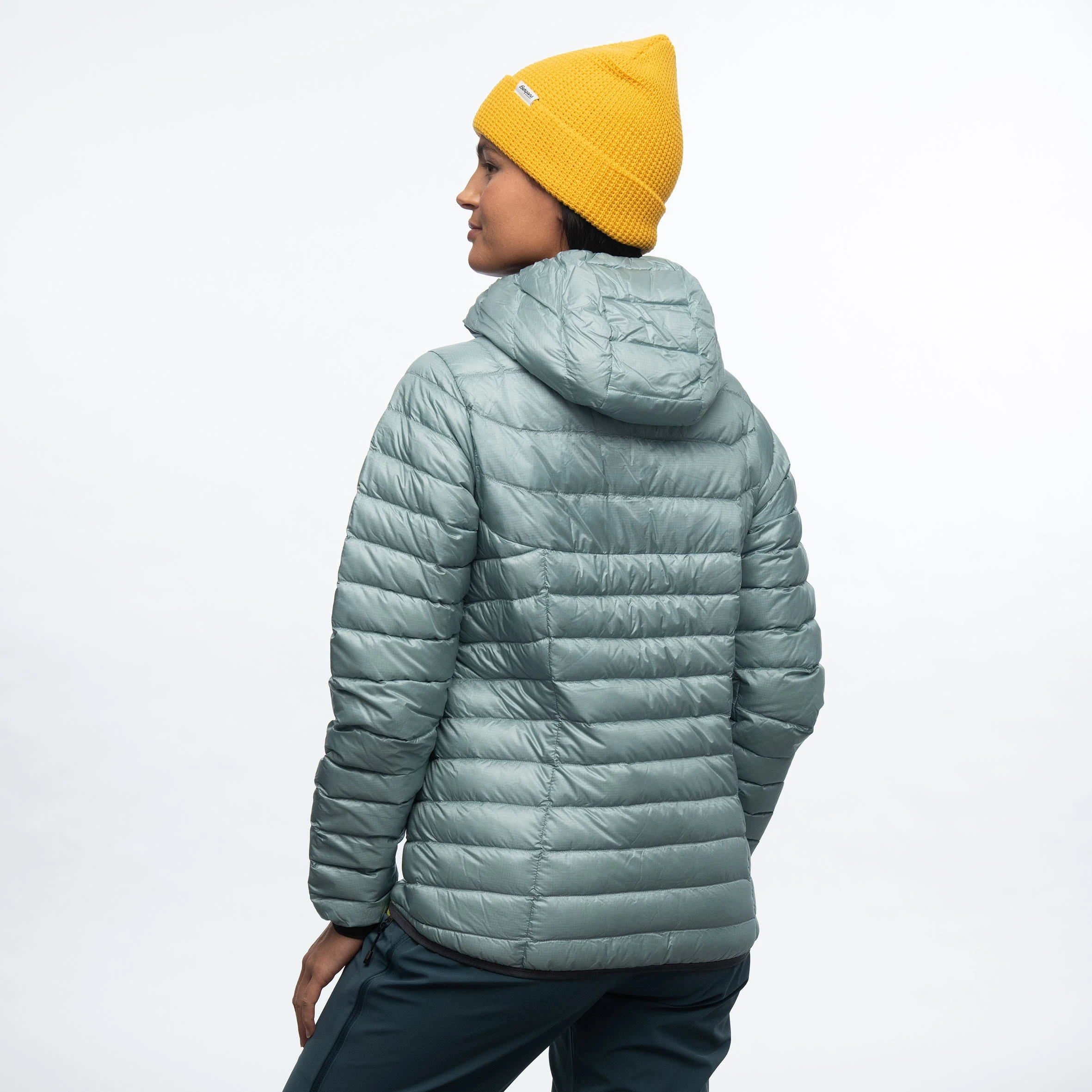 Isolasjonen du trenger, når du trenger den. Senja Down Light W Jacket er et isolerende plagg laget med fokus på lett vekt og lite pakkvolum. Den perfekte jakken å ha i sekken på toppturen når temperaturen faller. Pertex Quantum®-materialet er vindtett og vannavvisende. Panelene er fylt med sertifisert ansvarlig dun. Høy, beskyttende krage og hjelmtilpasset hette gir perfekt beskyttelse av hals og hode. Skulder- og sidesømmene er forskjøvet for å hindre slitasje og øke komforten ved bæring av sekk.