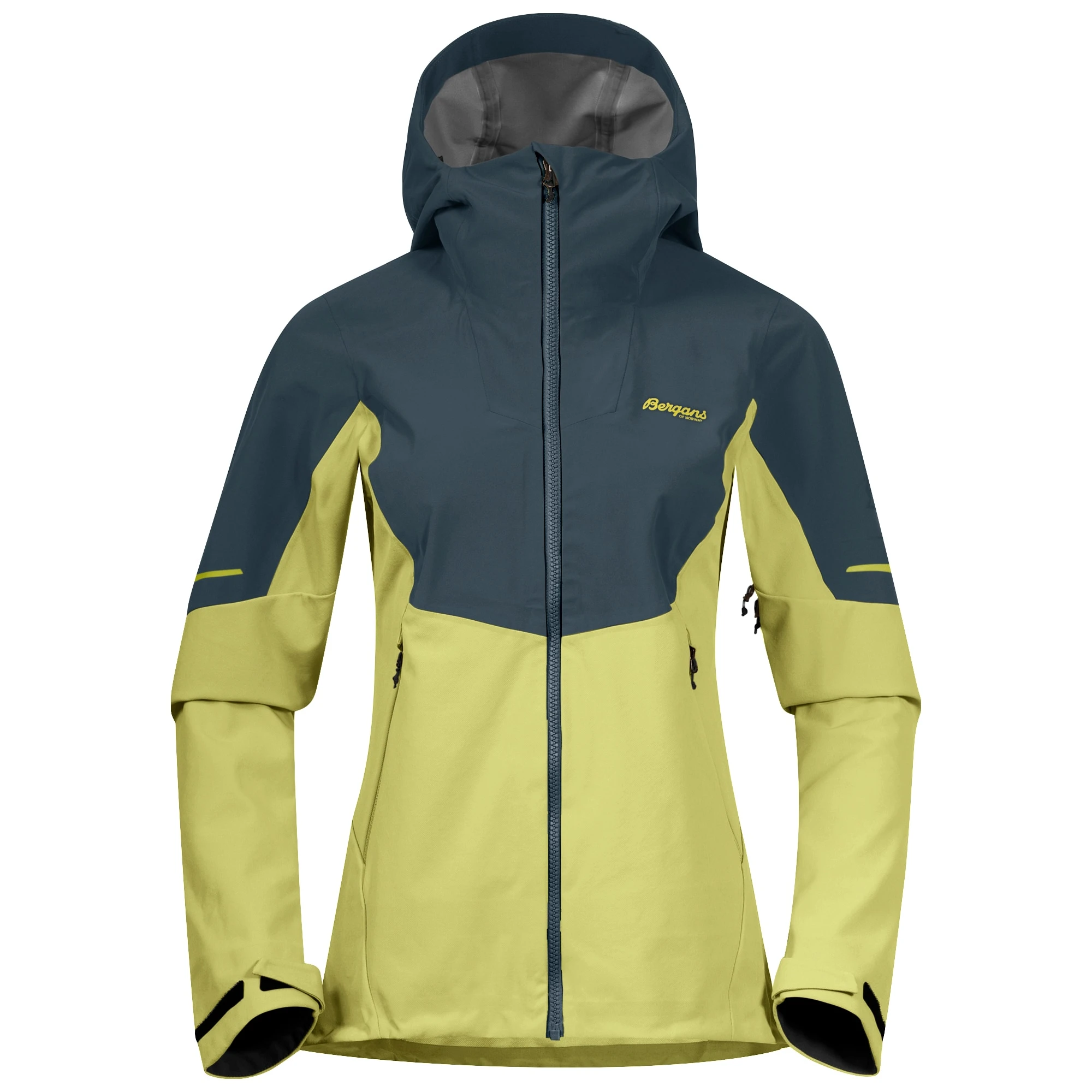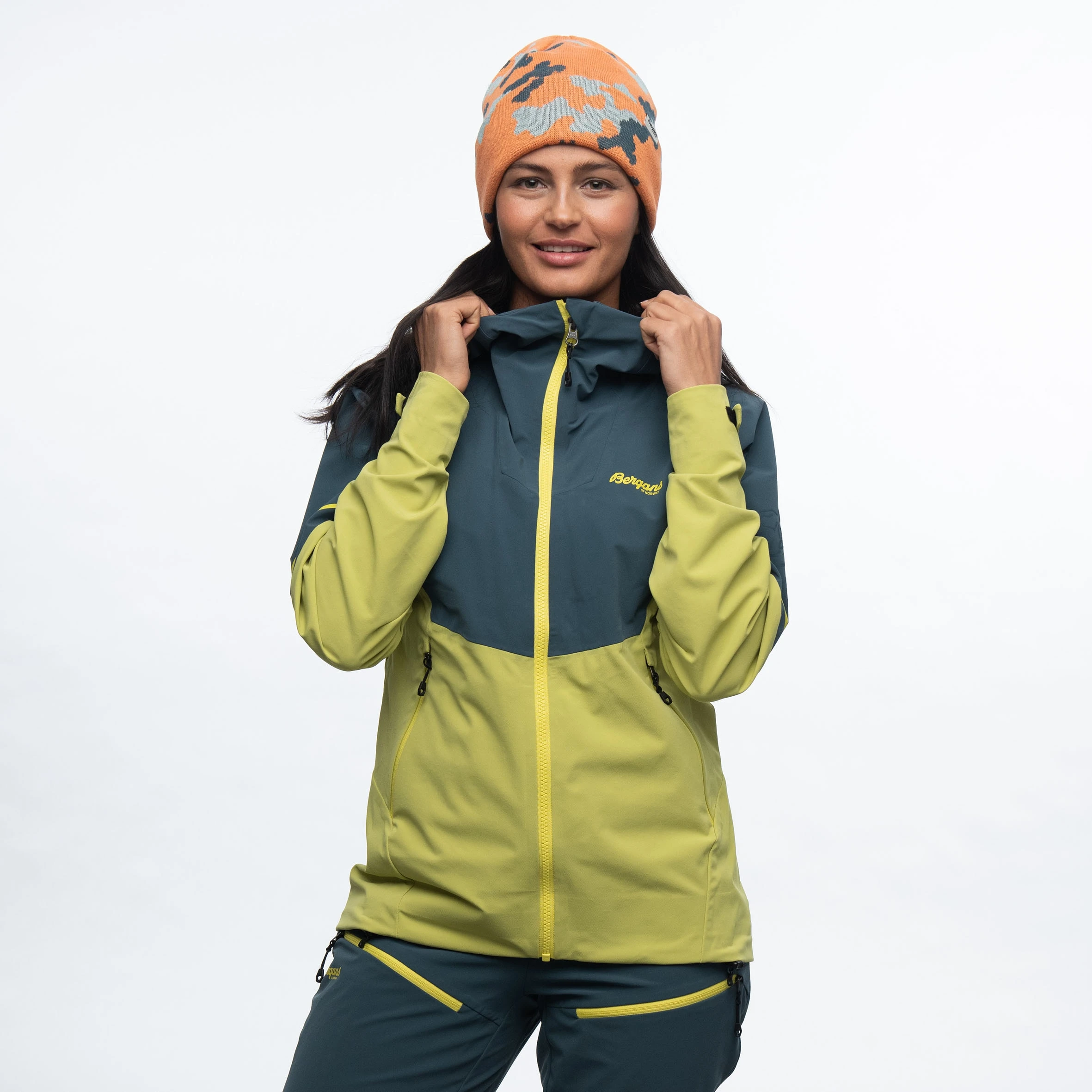Full bevegelsesfrihet og teknisk ytelse i fin design. Senja Hybrid Softshell W Jacket kombinerer to forskjellige typer softshellmaterialer. Den har et vind- og vanntett materiale med matt overflate på utsatte områder, som hetten, øvre del av ermet og brystet, og et vind- og vannavvisende materiale på områder hvor det er gunstig med optimal pusteevne. Begge er så myke og elastiske at du knapt kan vente med å komme deg ut. Skulder- og sidesømmene er forskjøvet for å hindre slitasje og øke komforten ved bæring av sekk. Senja Hybrid Softshell W Jacket har også ventilasjonsglidelås under ermene, romslige frontlommer med glidelås og hjelmtilpasset hette.