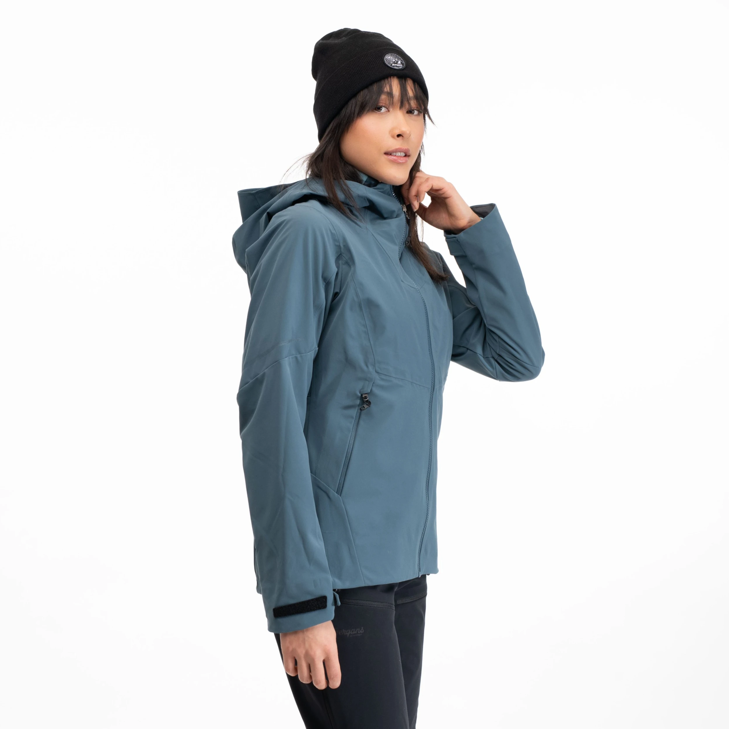 En kombinasjon av to lette og elastiske softshellmaterialer. Den har et vanntett materiale på utsatte områder, som hette og øvre del av jakken, og et pustende og fukttransporterende materiale på områder der du trenger mer ventilasjon. Komfortabelt, hurtigtørkende og fuktabsorberende materiale i halsen og på hakebeskyttelsen. Produktet inneholder bluesign® APPROVED trimmings.