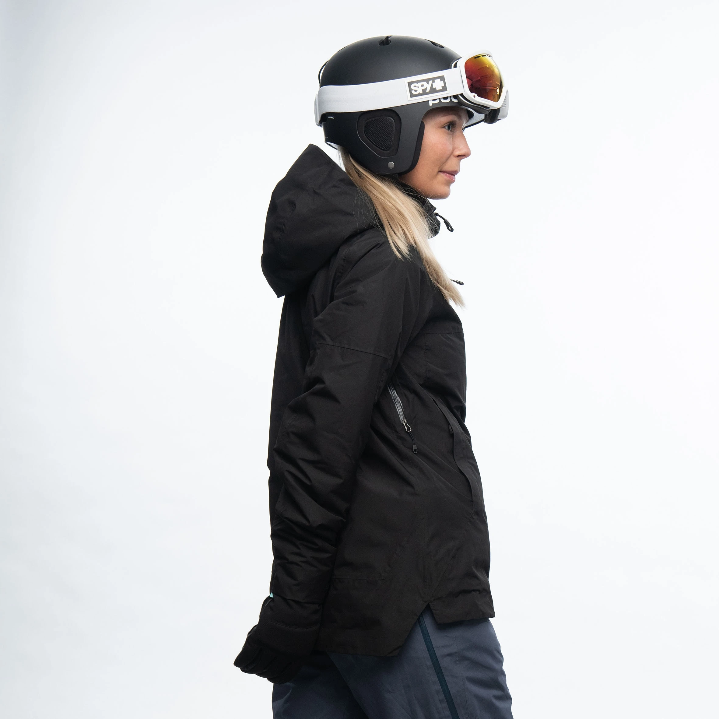 Det avtakbare snøskjørtet med bøyler og trykknapper kan festes til de fleste av skibuksene våre. Formsydd albueparti for god bevegelsesfrihet. Innerklaff innenfor frontglidelåsen for bortledning av vann. Formsydd ermeavslutning med borrelås. Enhånds elastisk snorstramming i nederkant. Ingen skulder- eller sidesømmer for å forhindre friksjon og gnaging. Rett passform med forlenget ryggparti.