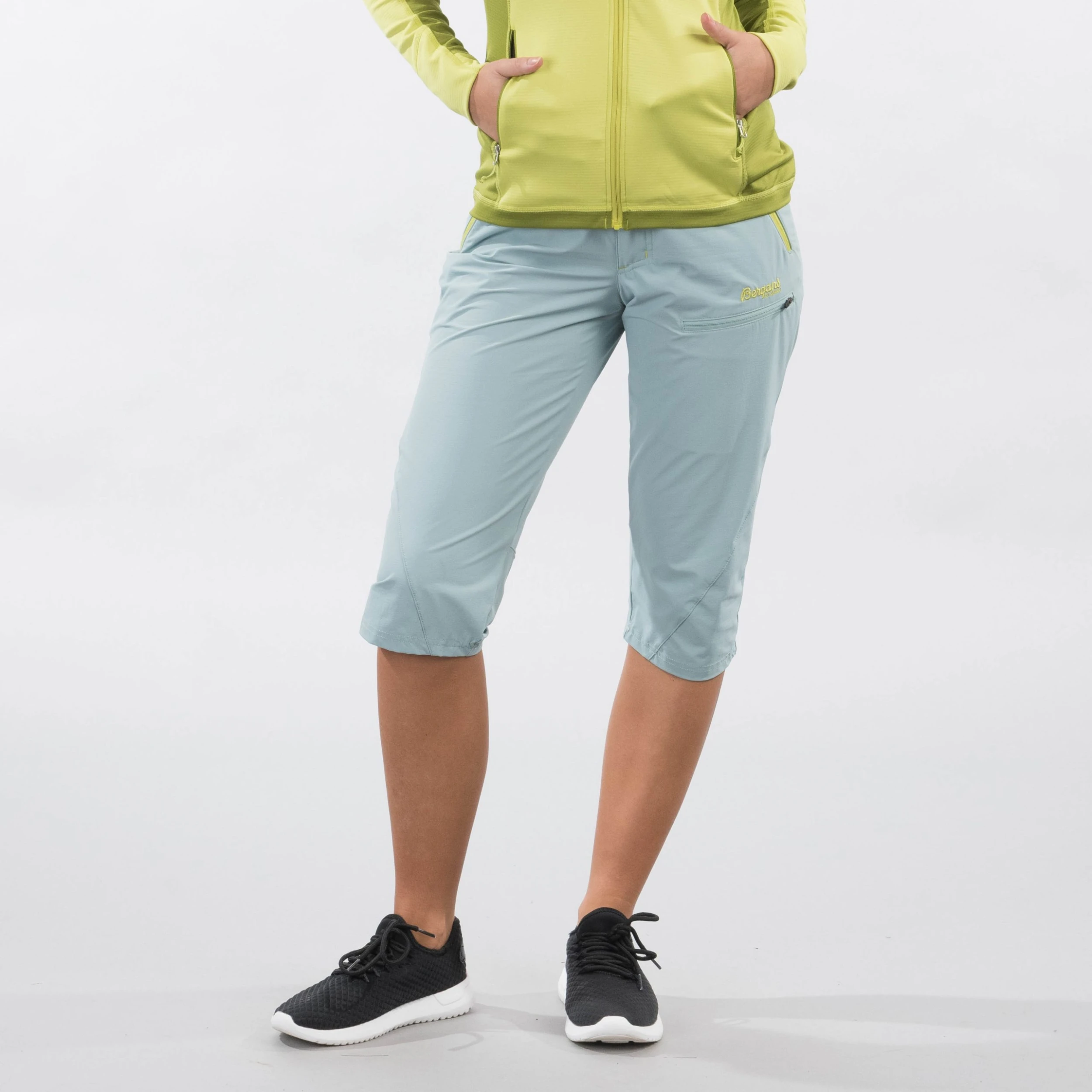 Lett bukse med smal passform og kortere benlengde. Tyin ¾ Pants er laget av et komfortabelt og vindtett softshellmateriale med mye stretch, noe som gir høy komfort og god bevegelsesfrihet. I tillegg har den svært god pusteevne og tørker raskt hvis du blir våt underveis på turen. ¾-lengden er det perfekte valget for aktive sommerdager.
