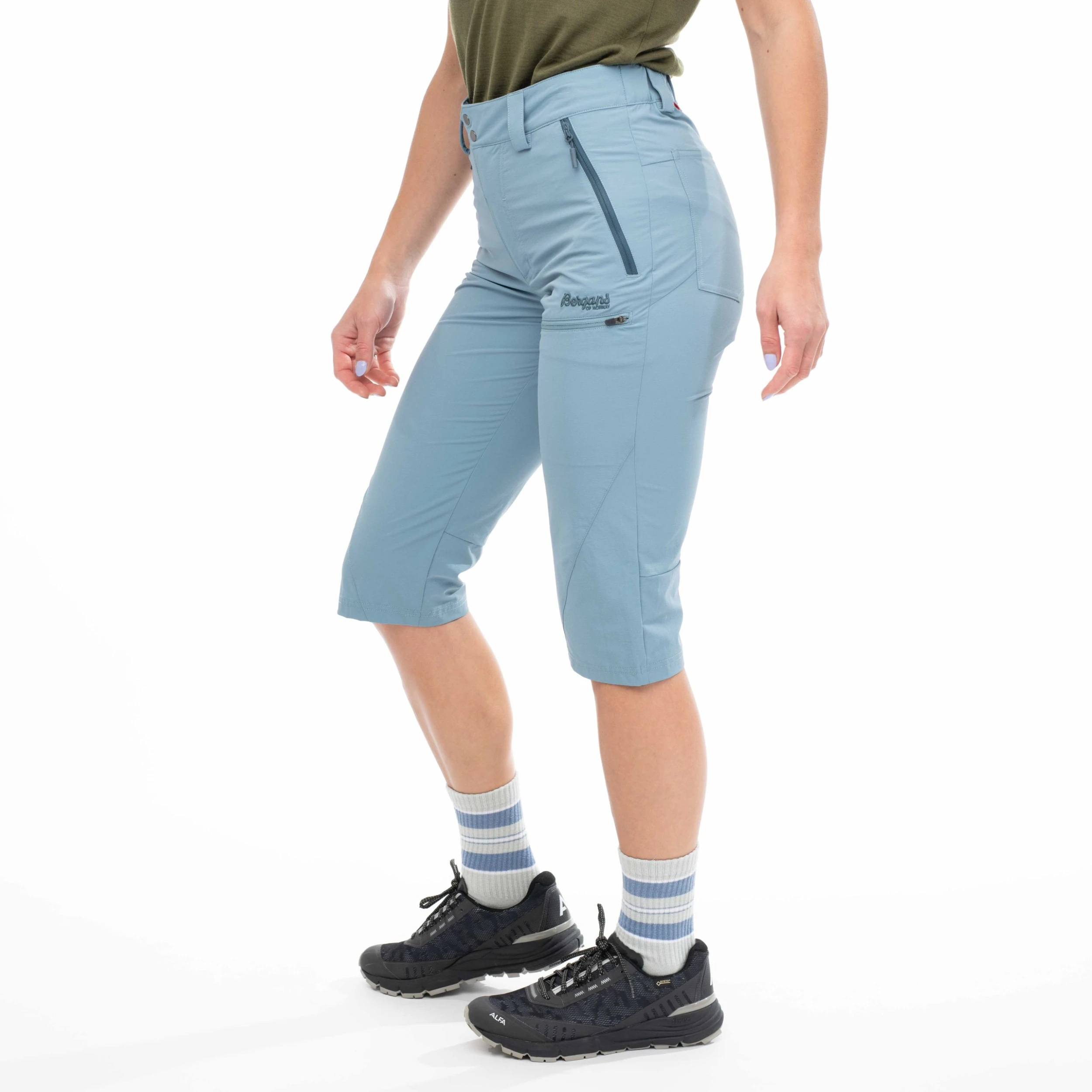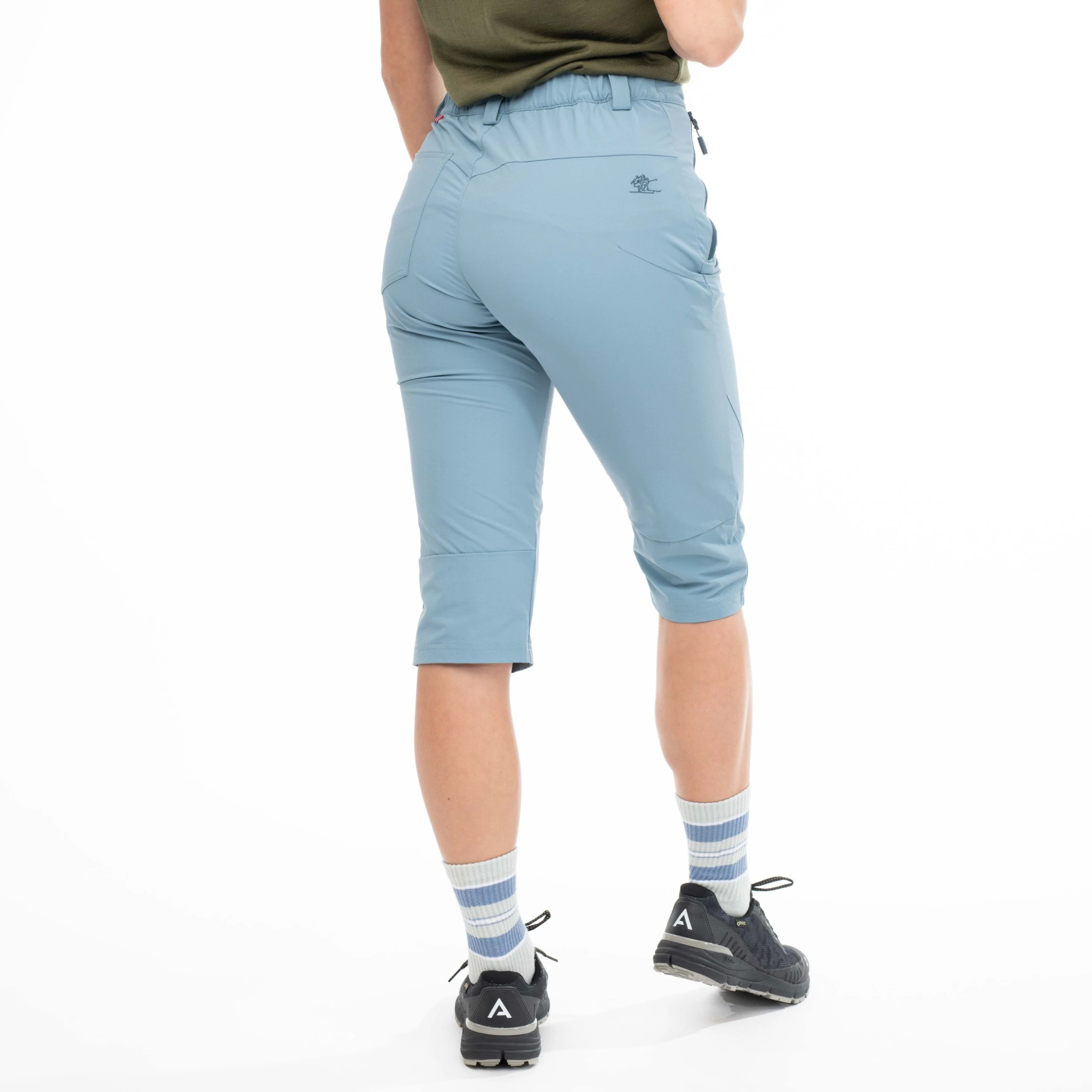 Lett bukse med smal passform og kortere benlengde. Tyin ¾ Pants er laget av et komfortabelt og vindtett softshellmateriale med mye stretch, noe som gir høy komfort og god bevegelsesfrihet. I tillegg har den svært god pusteevne og tørker raskt hvis du blir våt underveis på turen. ¾-lengden er det perfekte valget for aktive sommerdager.