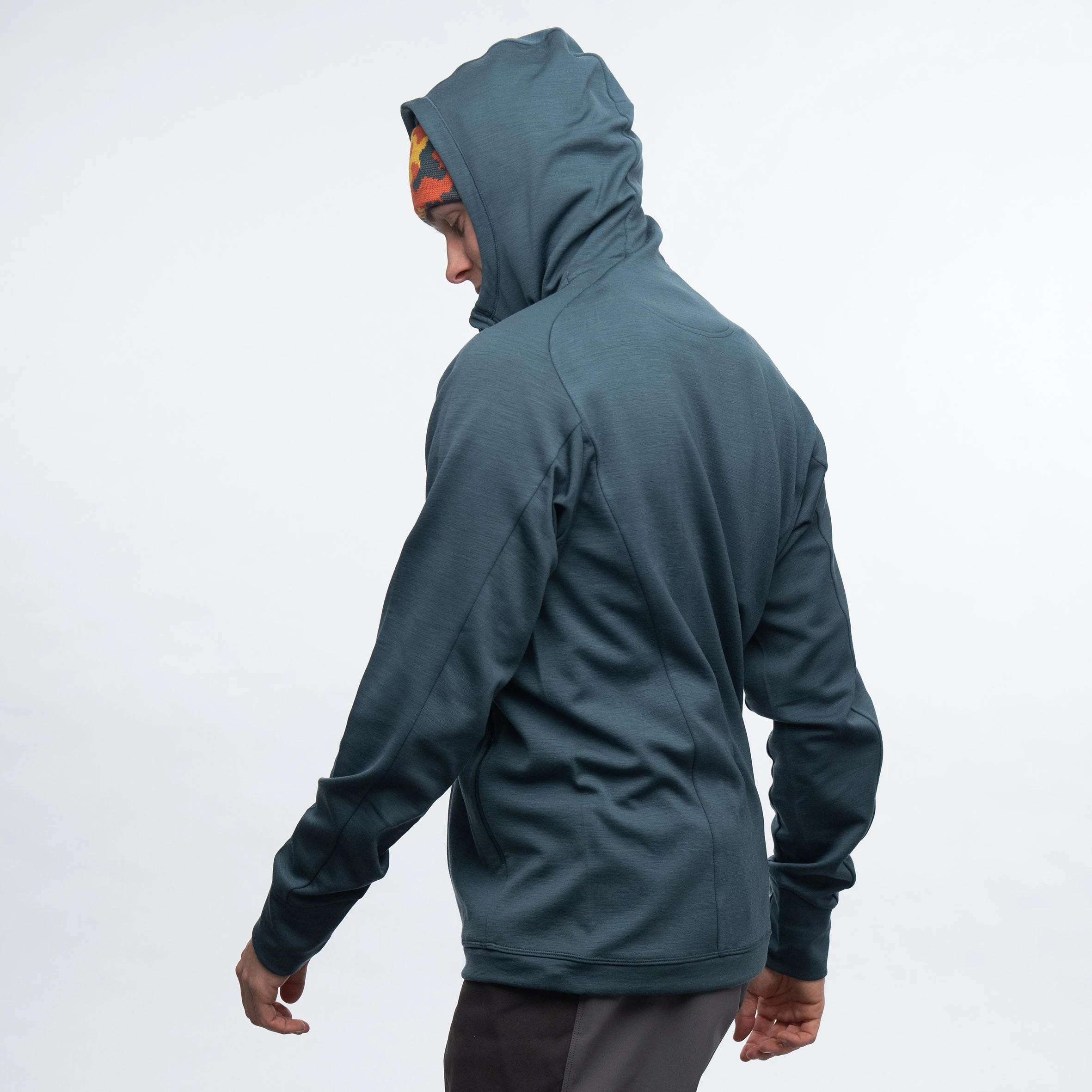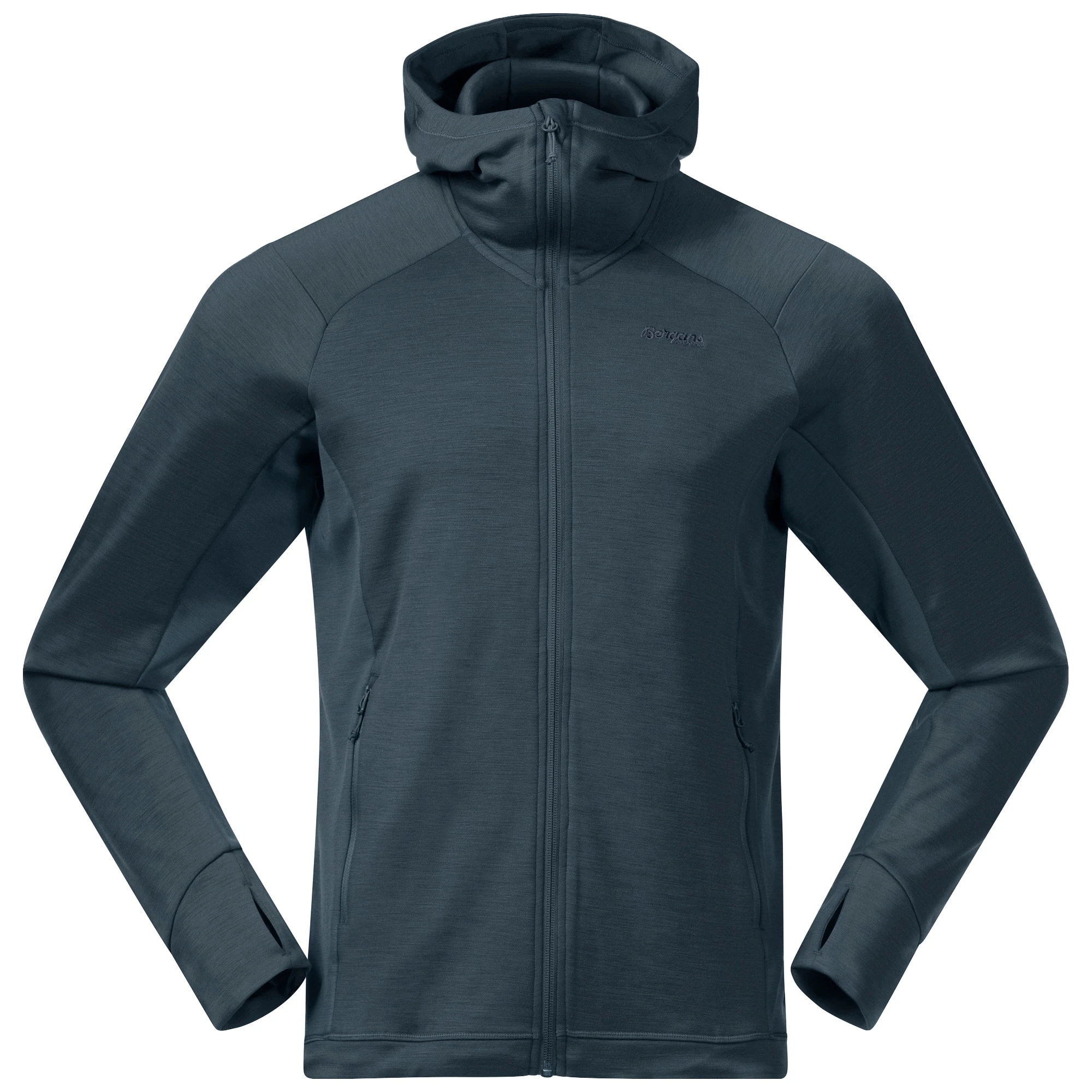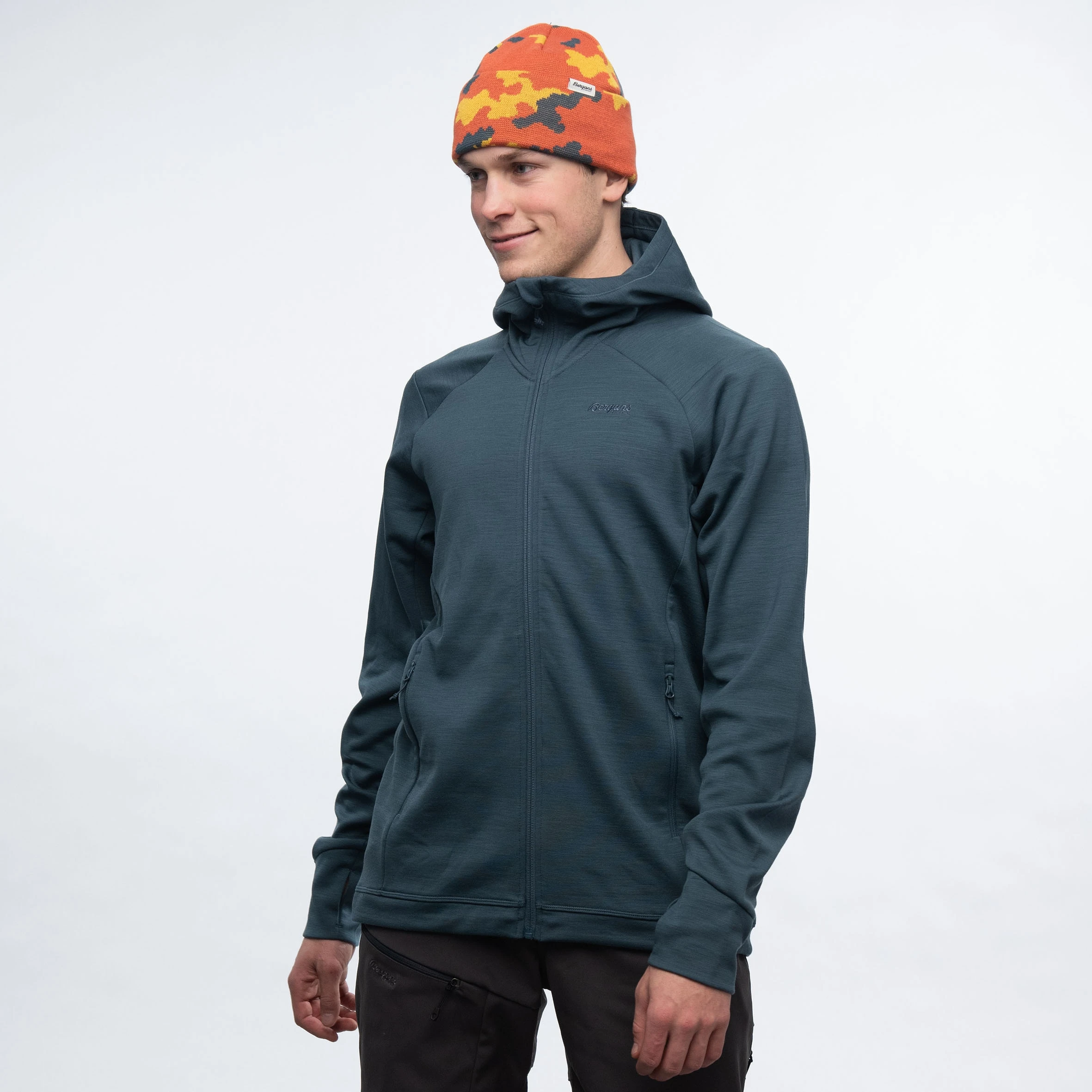 Myk og komfortabel hettejakke laget av en blanding av ull og 100 % resirkulert polyester. Ulstein Wool Hood Jacket består av to forskjellige kvaliteter. En side i merinoull og én side i resirkulert polyester. Den spesielle strikkestrukturen gjør at stoffet holder mer på luft, noe som gir det høyere isolasjonsevne. Materialet tørker raskt og har enestående fukttransporterende evne, og gjør dermed Ulstein Wool Hood Jacket til det perfekte valget som ytterplagg eller isolerende mellomlag.