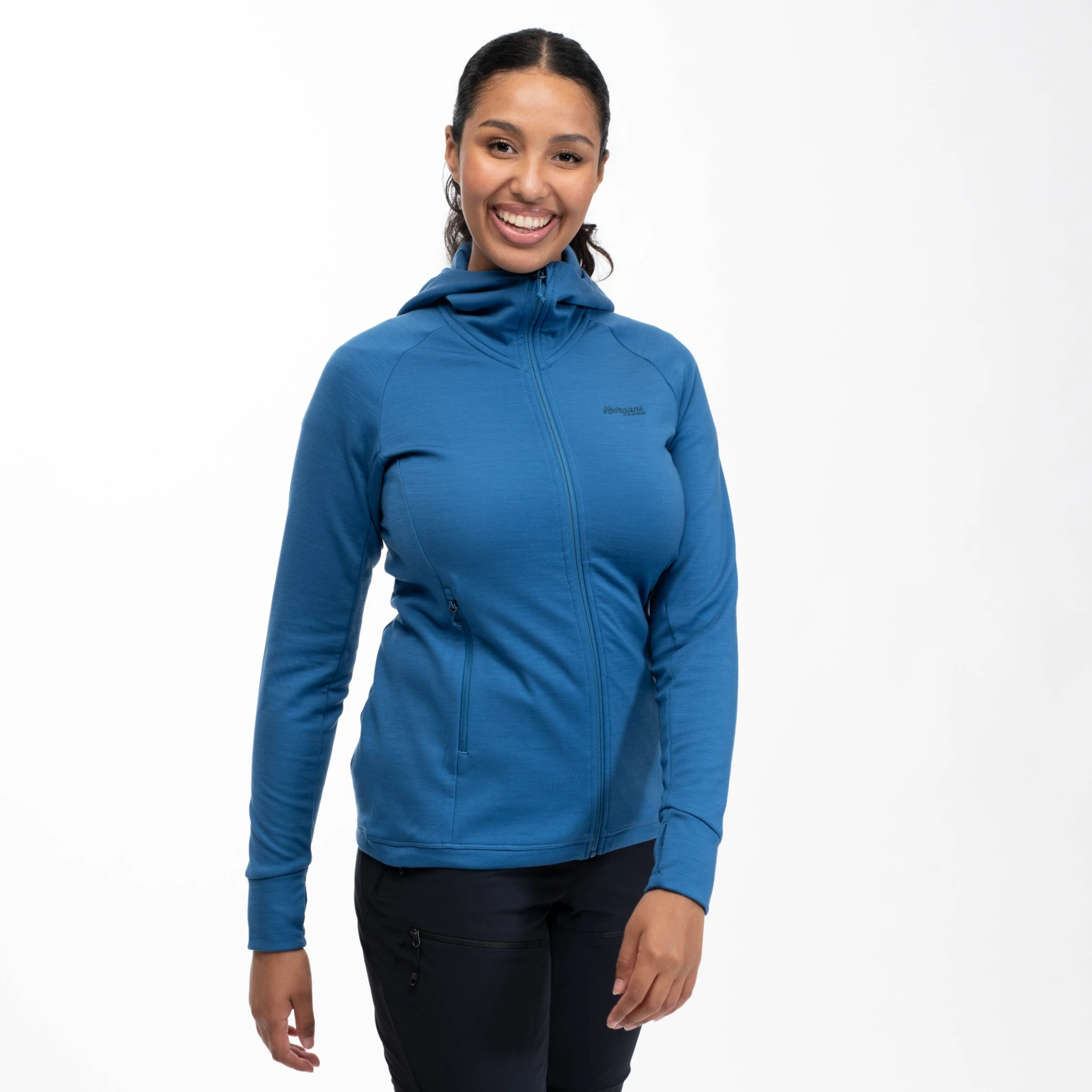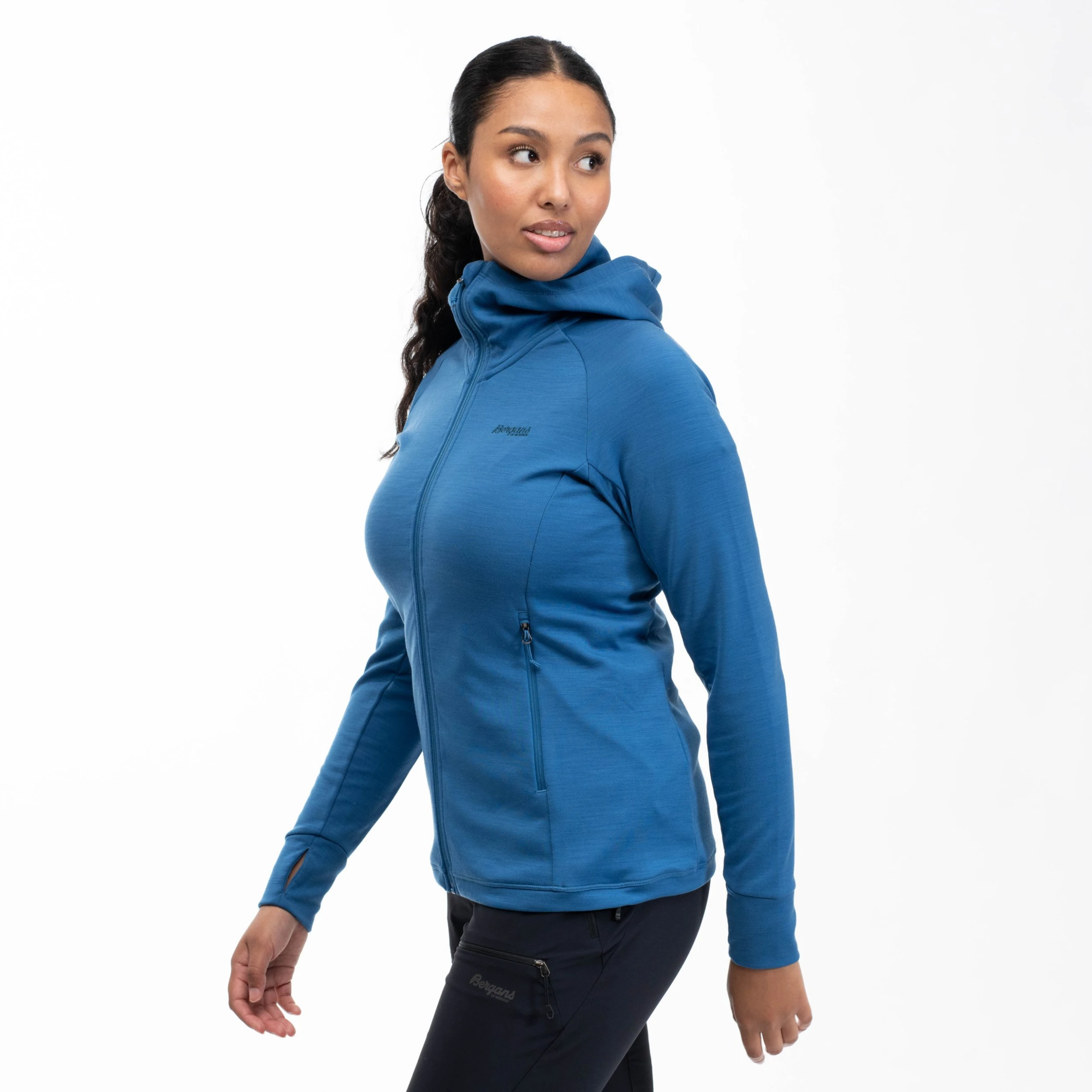 Myk og komfortabel hettejakke laget av en blanding av ull og 100 % resirkulert polyester. Ulstein Wool Hood W Jacket består av to forskjellige kvaliteter. En side i merinoull og én side i resirkulert polyester. Den spesielle strikkestrukturen gjør at stoffet holder mer på luft, noe som gir det høyere isolasjonsevne. Materialet tørker raskt og har enestående fukttransporterende evne, og gjør dermed Ulstein Wool Hood W Jacket til det perfekte valget som ytterplagg eller isolerende mellomlag.