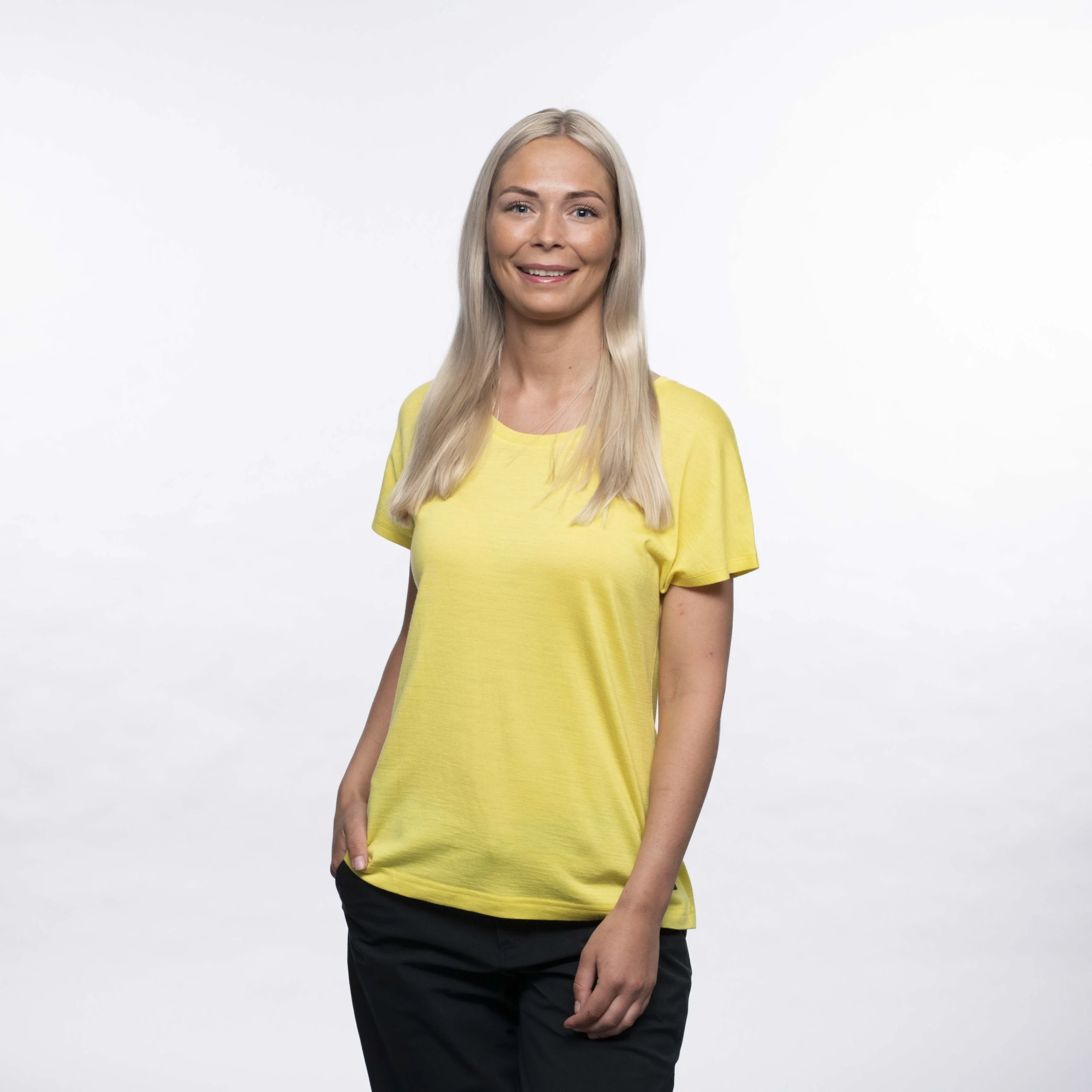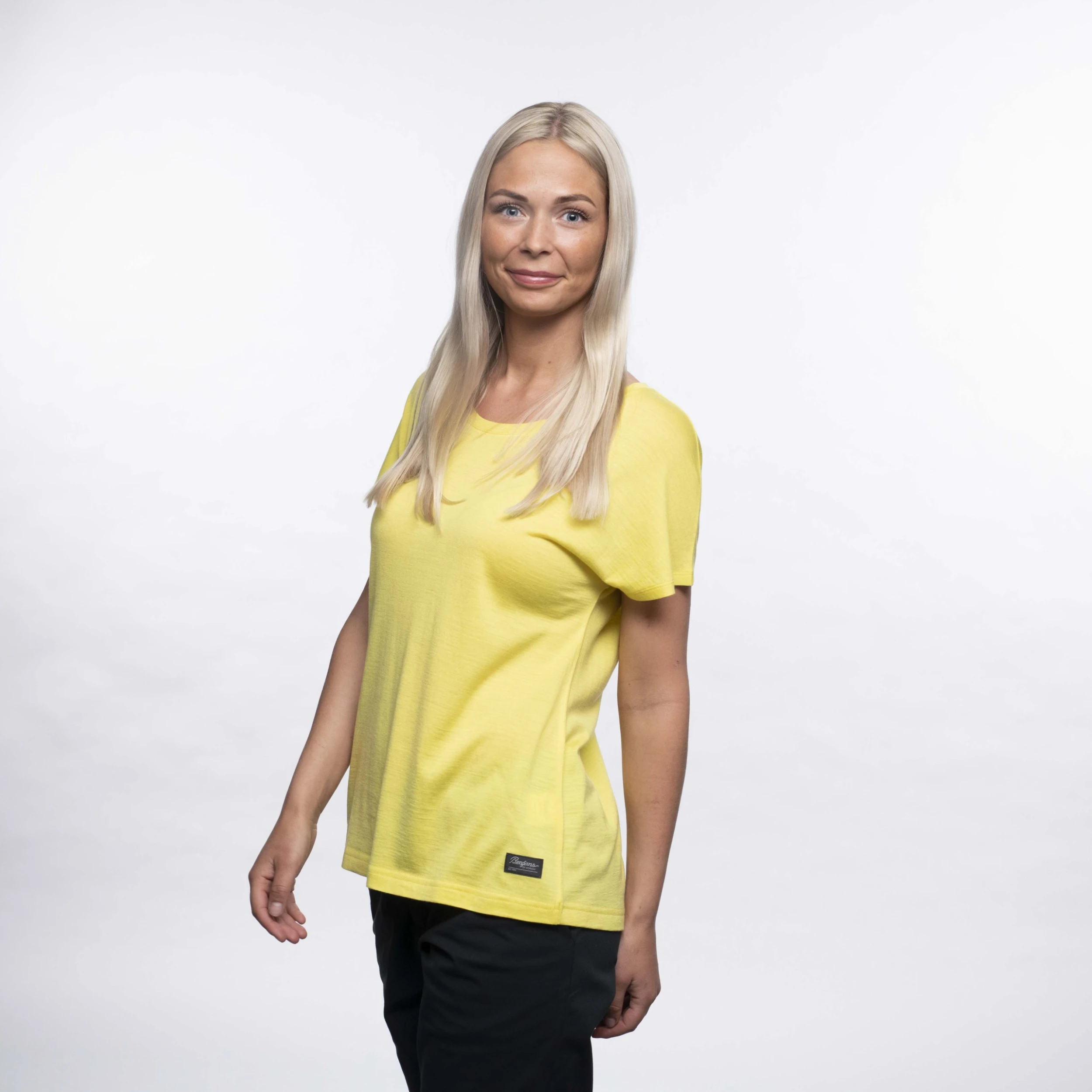 Urban Wool W Tee er fremstilt av en blanding av merinoull og Tencel som føles svalende mot huden på varme dager og varmer på kalde dager. Merinoullen varmer selv om den blir våt og kan ta opp mer enn 30 % av sin egen vekt før den føles fuktig.