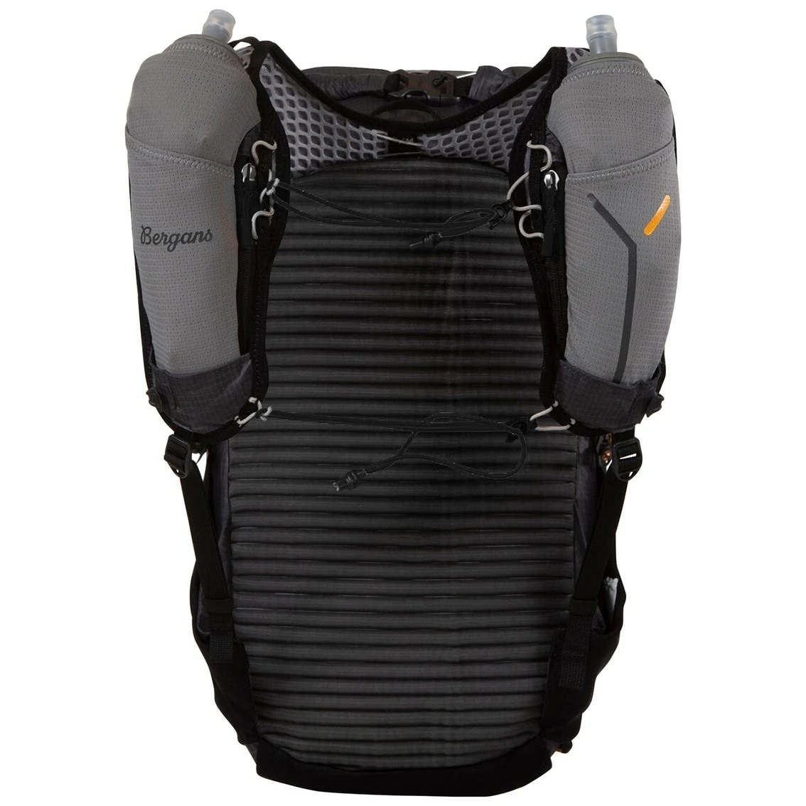 Unikt vattert og ventilerende ryggpanel i 3D-mesh som lufter ut svette og fuktighet. Bergans patenterte RS3; Rock Steady Stability System. Ventilerende, bred skulderrem med justeringsmuligheter.