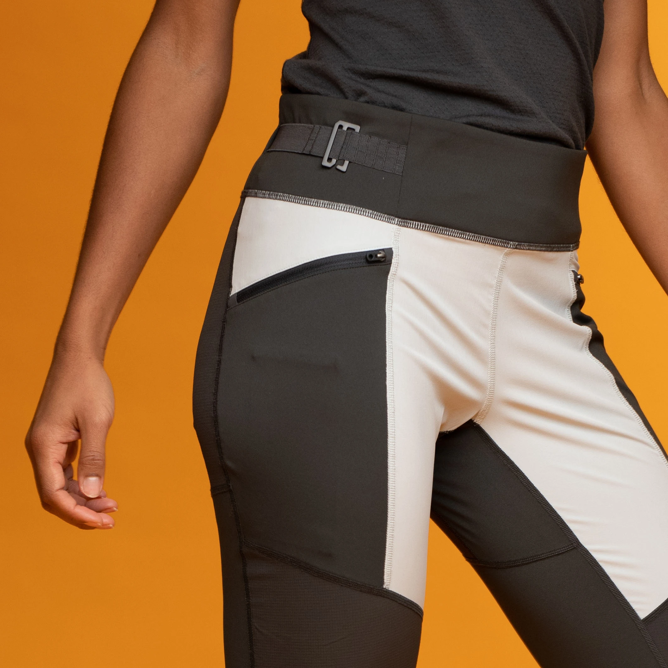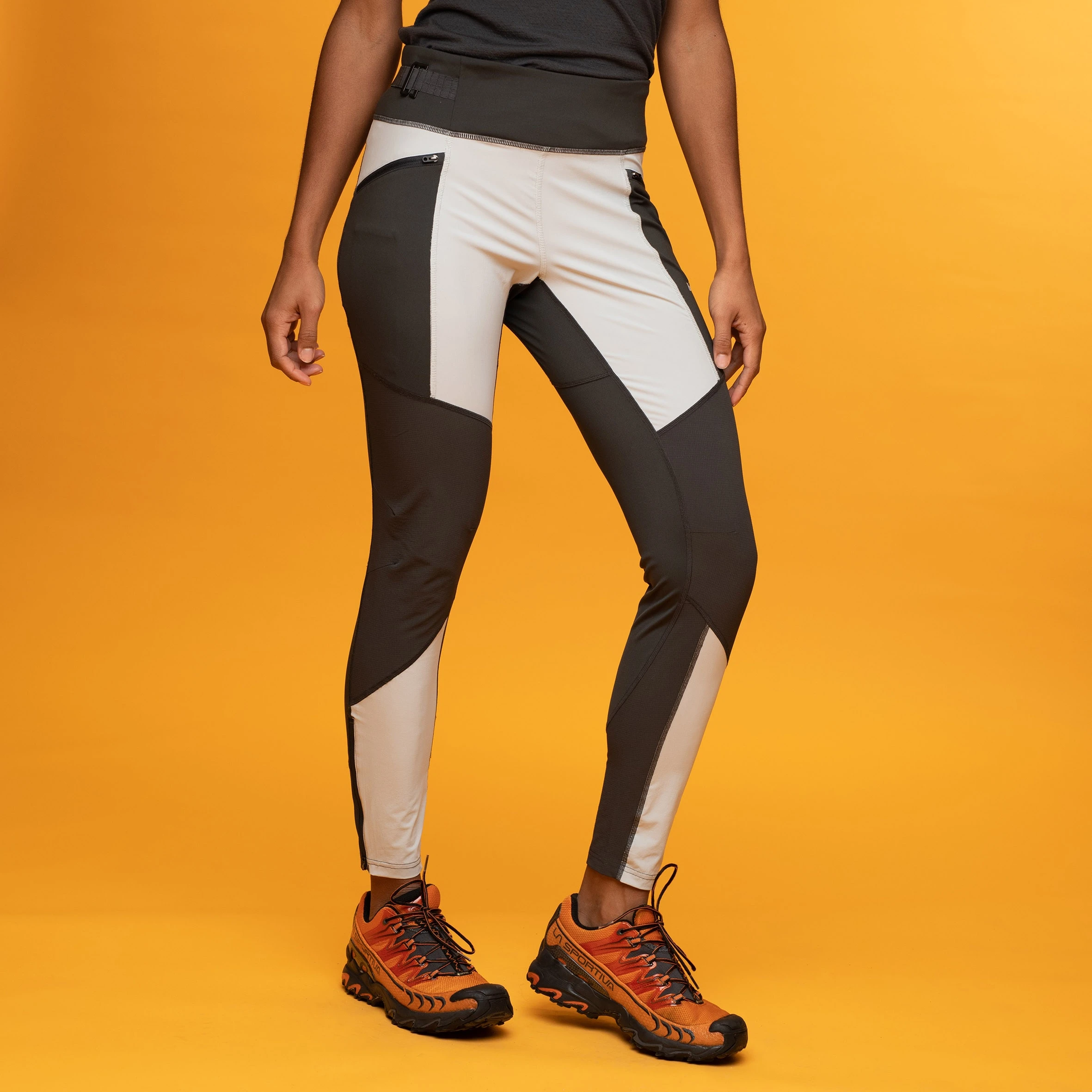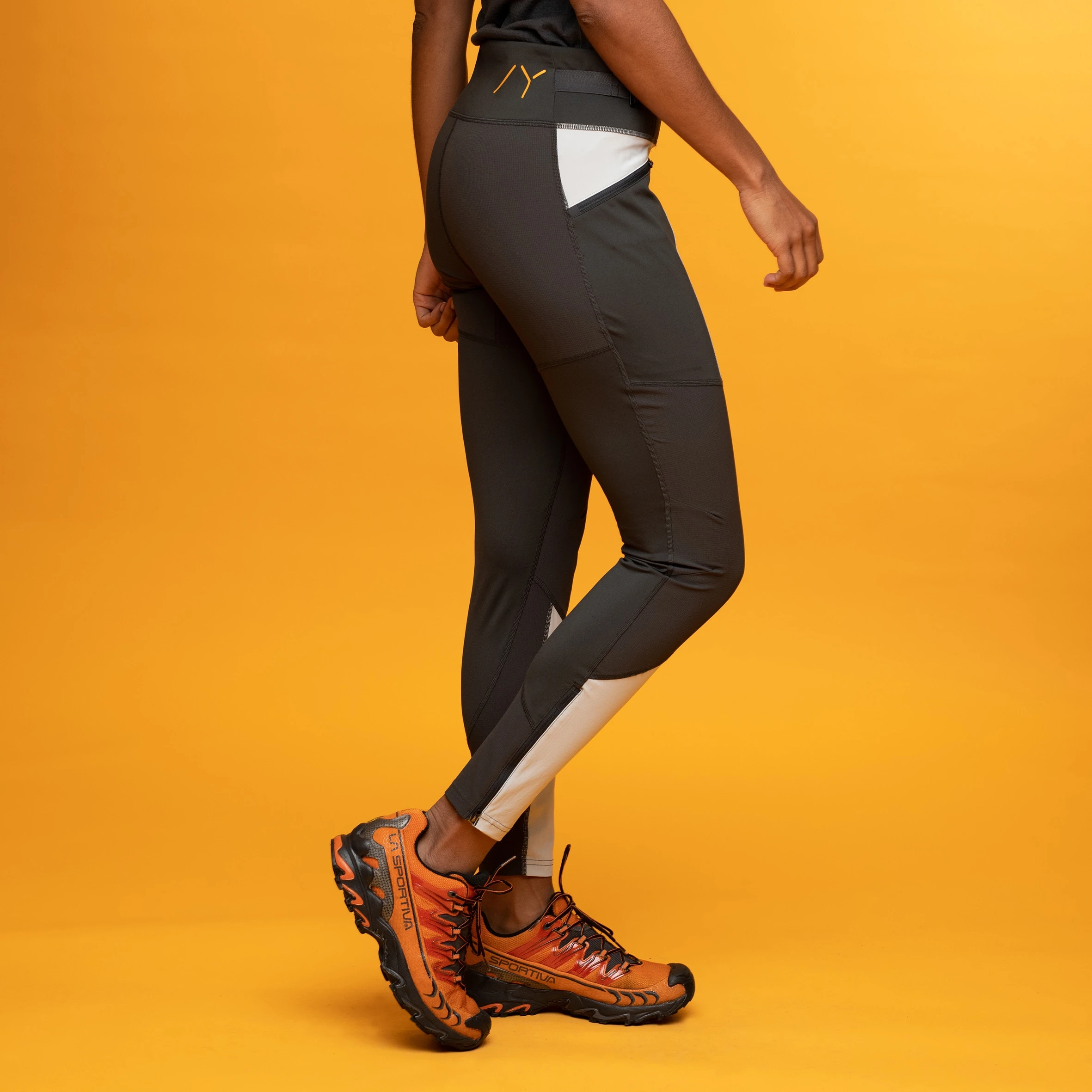 Elastisk og justerbar yogalinning for optimal komfort. Formsydd kneparti. Kile og glidelås nederst på buksebena for justering av vidden, slik at de passer over kraftige fjellstøvler. Tettsittende bukseben når glidelåsen er lukket. Panelkonstruksjon i skrittet for å forhindre friksjon og gnaging på innsiden av lårene. Refleksdetaljer.